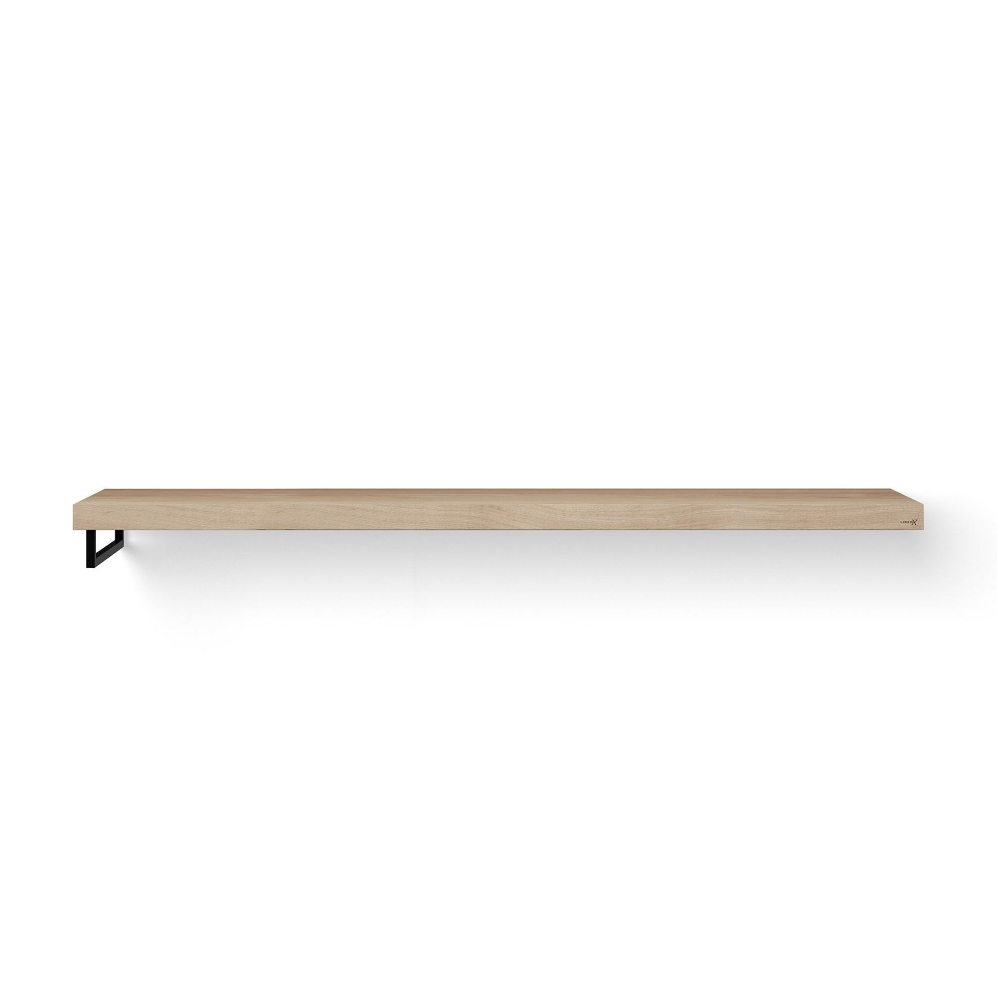 Looox Wood collection Solo wastafelblad - 200x46cm - Met handdoekhouder (links) mat zwart - Massief eiken Old grey