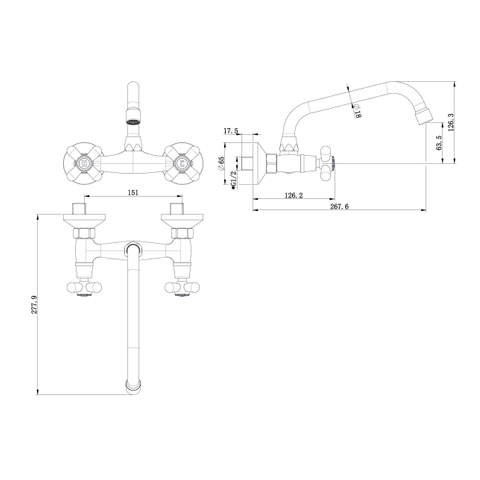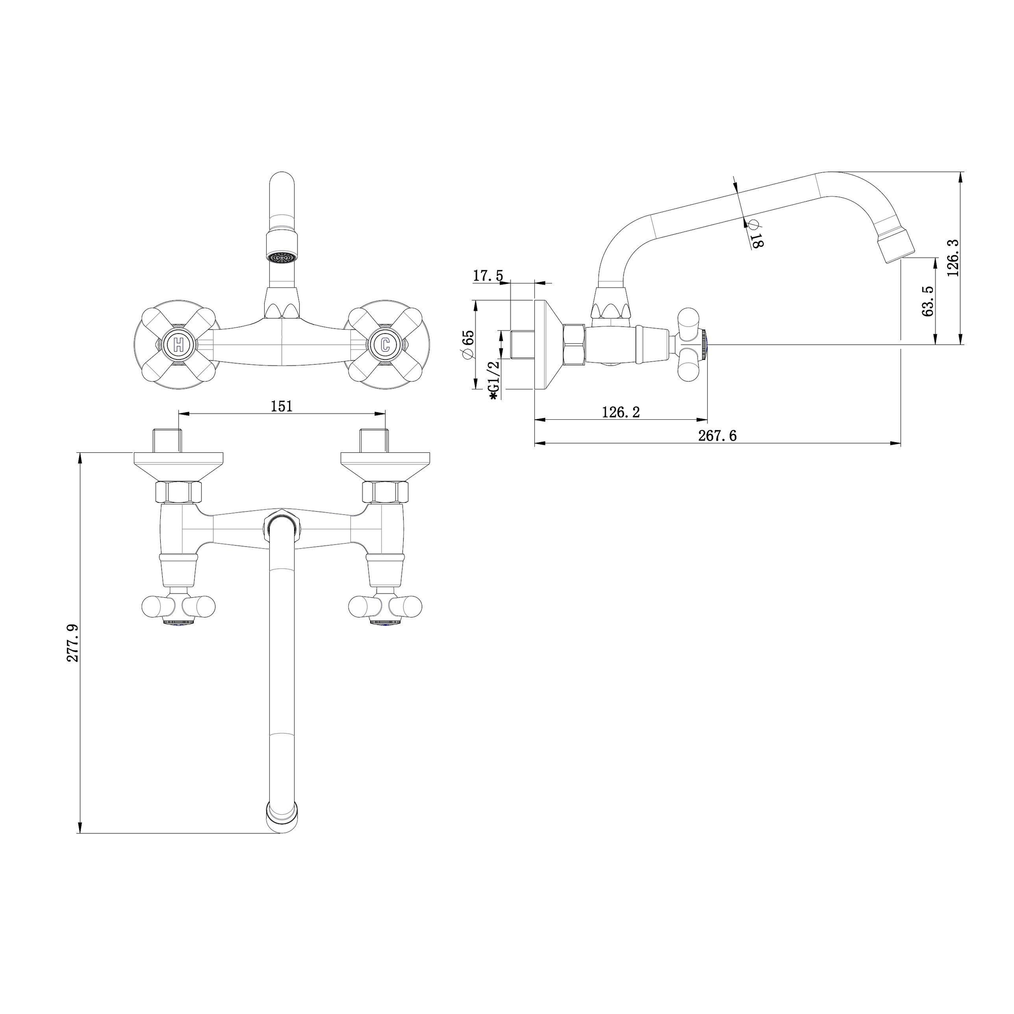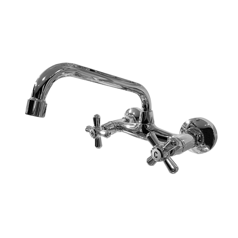 De wandkraan is voorzien van twee knoppen in de vorm van een kruisgreep. Kruisgreep geeft u een goede houvast maar brengt ook een ouderwets tintje mee. Voor de finishing touch is er gezorgd voor een letter H en C op de knoppen. Dit is om duidelijk te maken uit welke knop koud en warm water komt.
