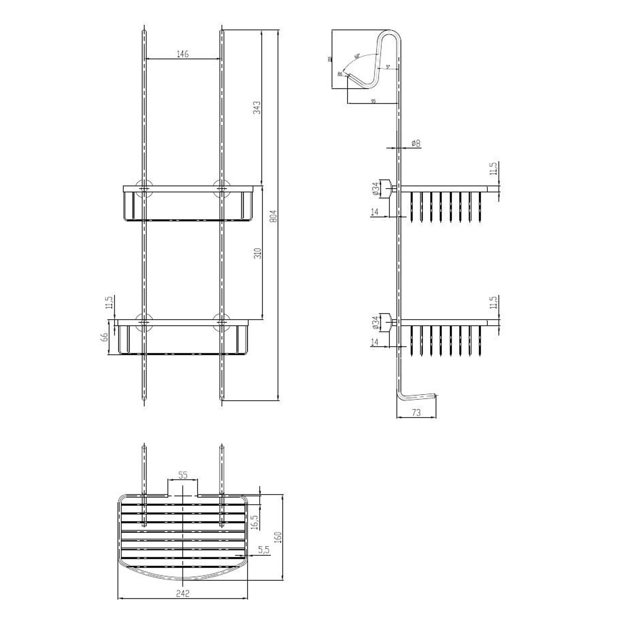 - Ophangrek voor douchewand met 2-schappen
