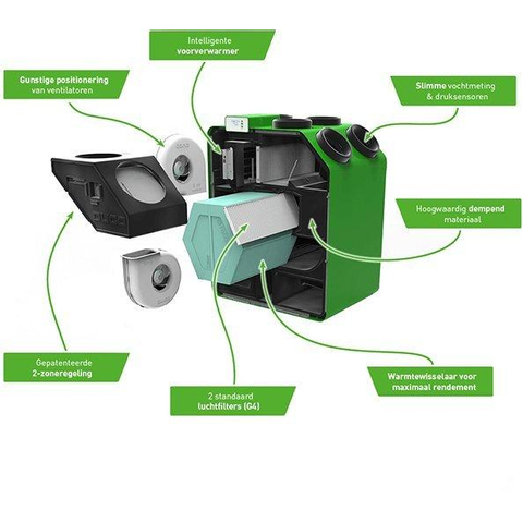 De Duco WTW DucoBox Energy 570 2ZH onderscheidt zich door zijn efficiëntie. Dankzij de 2 zone sturing met heater kan de ventilatie en verwarming nauwkeurig worden afgestemd op de behoeften van verschillende ruimtes. Hierdoor wordt energie bespaard en wordt een optimaal binnenklimaat gecreëerd. Met een capaciteit van 570m³/h zorgt dit systeem voor een continue toevoer van frisse lucht, waardoor schimmels en vocht geen kans krijgen.