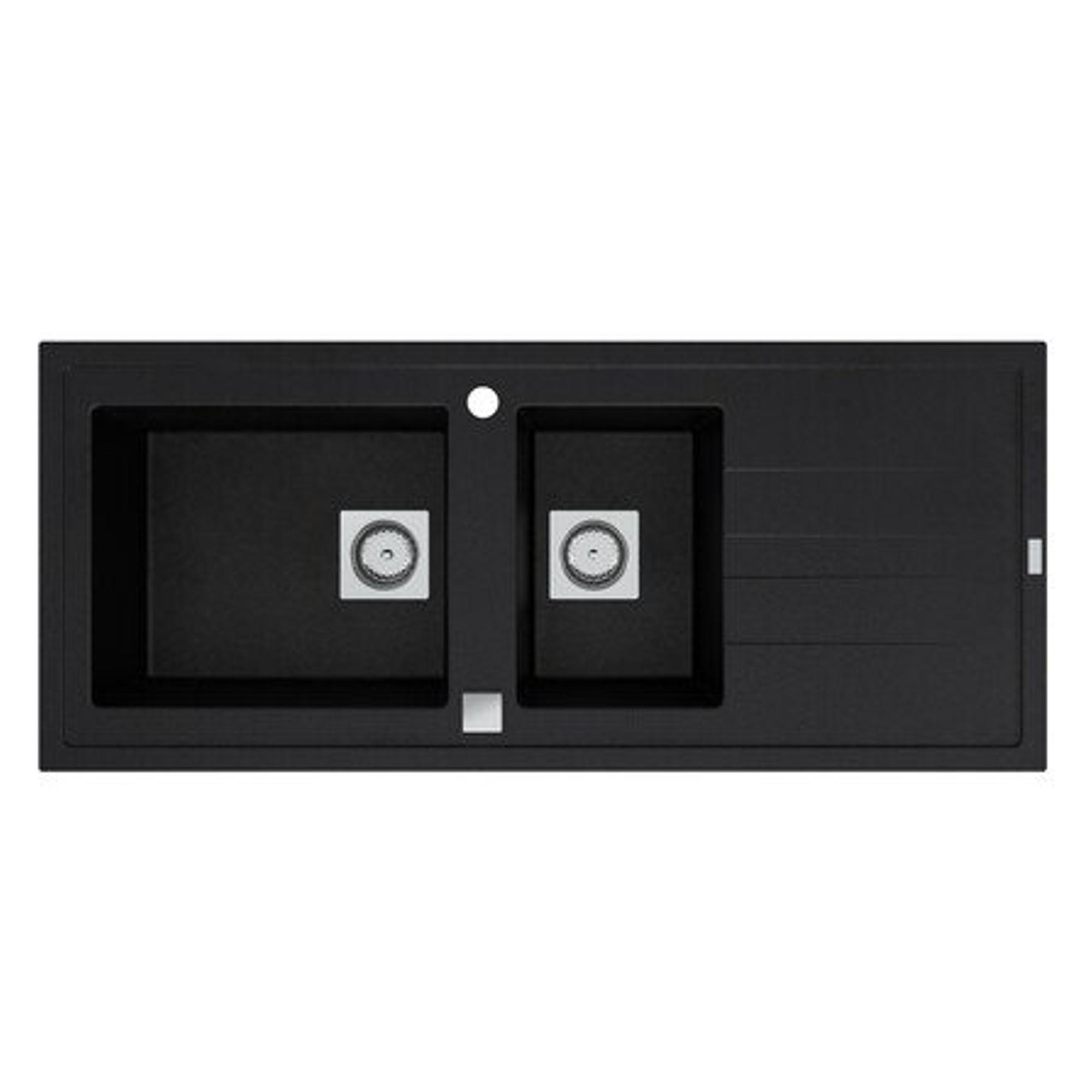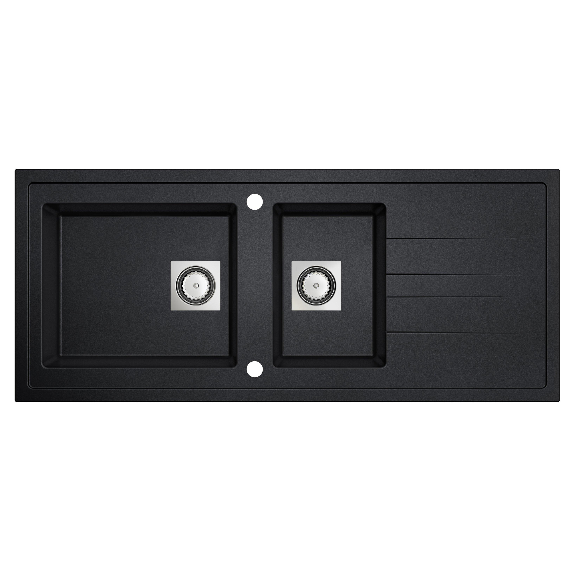 GO by Van Marcke Molto inbouwspoeltafel composiet met 2 bakken met afdruip 1170 x 500 mm met vierkante manuele plug omkeerbaar zwart