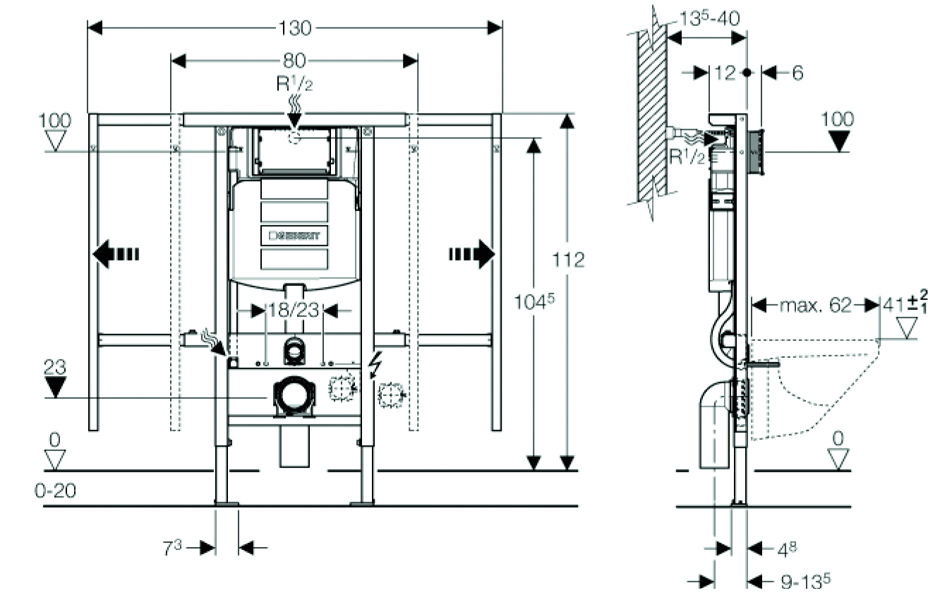 Geberit Duofix Element voor wand wc fixatieset inbegrepen Delta inbouwreservoir 12cm UP100