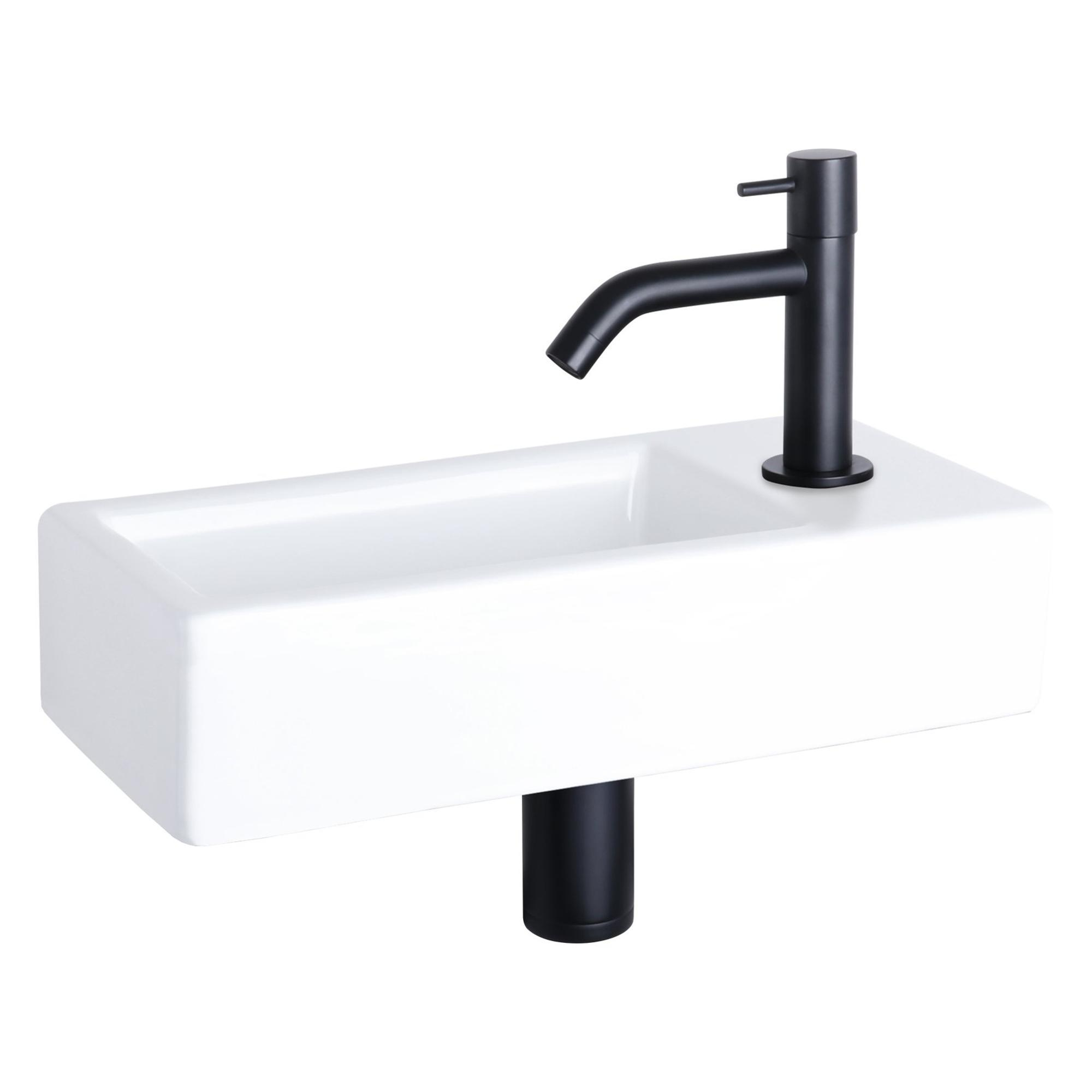 Differnz Hura fonteinset - 38.5x18.5x9cm - Rechthoek - 1 kraangat - Zwart mat gebogen kraan - Keramiek Wit