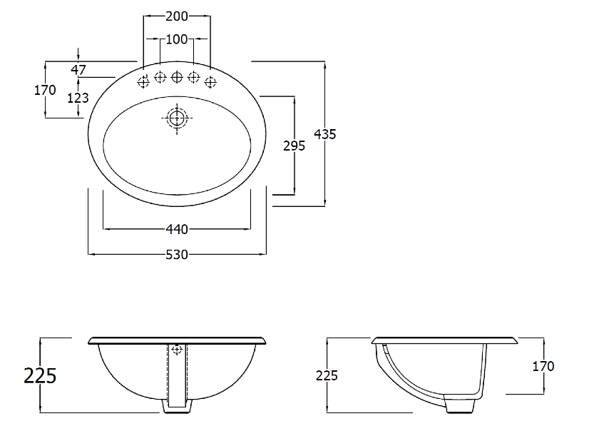 Nemo Start Star inbouwwastafel 530 x 435 x 225 mm porselein wit ovaal voorgeboord centraal kraangat met overloop