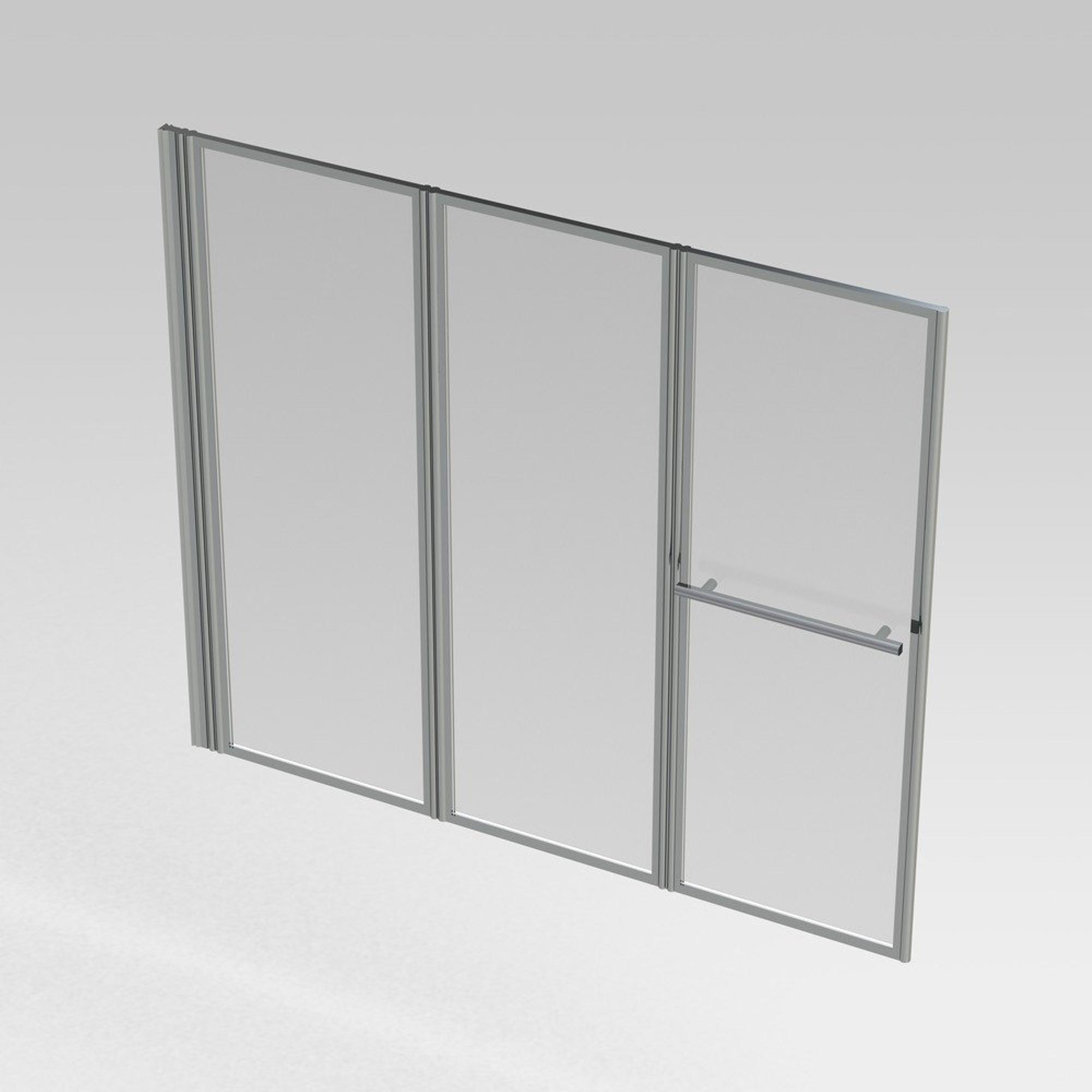 De wand is volledig omkeerbaar, zodat je hem zowel links als rechts kunt plaatsen. De drie panelen kunnen naar binnen worden gevouwen tot 180°, waardoor je eenvoudig instapt of de wand compact opzij klapt wanneer je hem niet gebruikt. Het gepolijste aluminium profiel in een glanzende chroomlook geeft een moderne touch aan je badkamer.