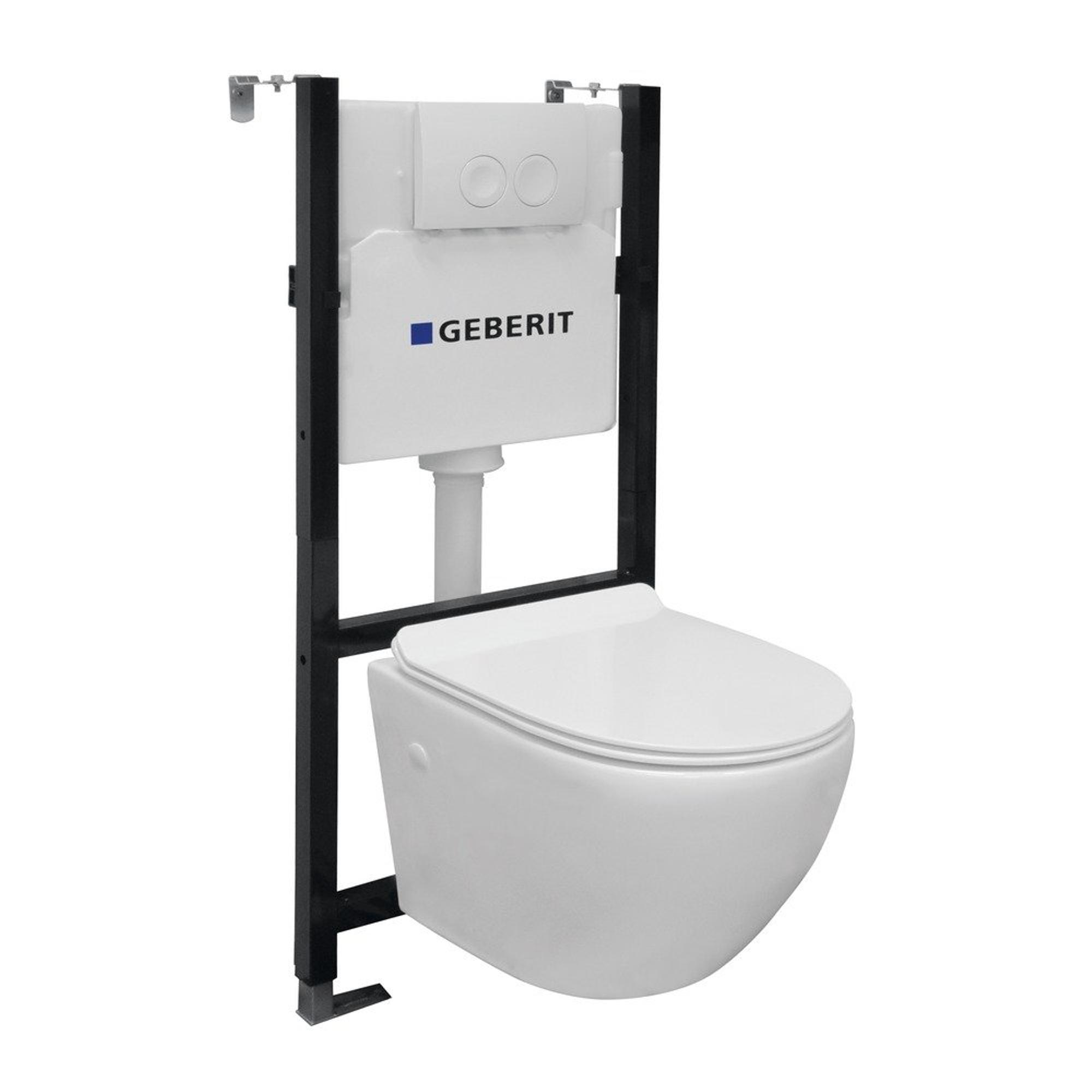 Nemo Go Aquaflow toiletset Spoelrandloos bestaande uit Geberit inbouwreservoir, met softclose toiletzitting quick release en bedieningsplaat wit