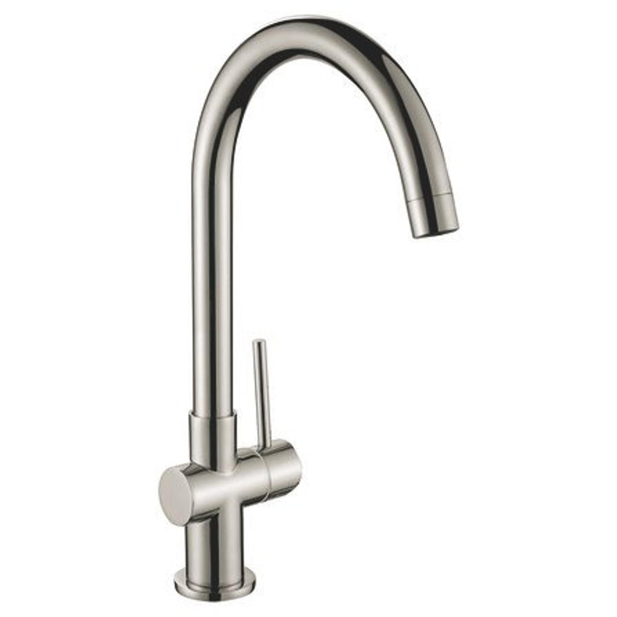 Keukenmengkraan Cocoon met Inox-look. Eengreeps model, met design hendel. Met flexibele aansluitslangen 3/8. Uitgerust met duurzame, onderhoudsvrije keramische schijven.
