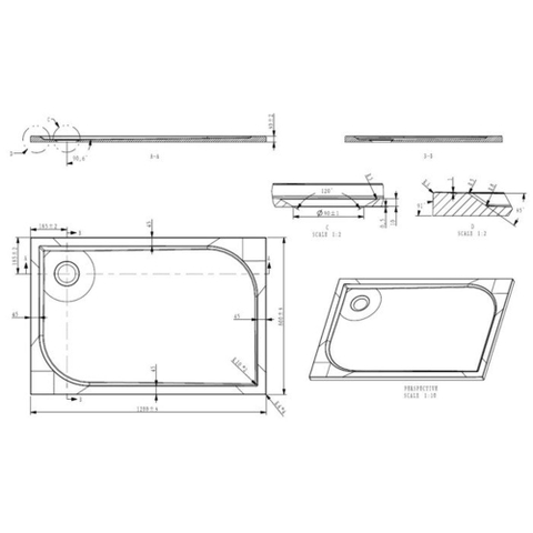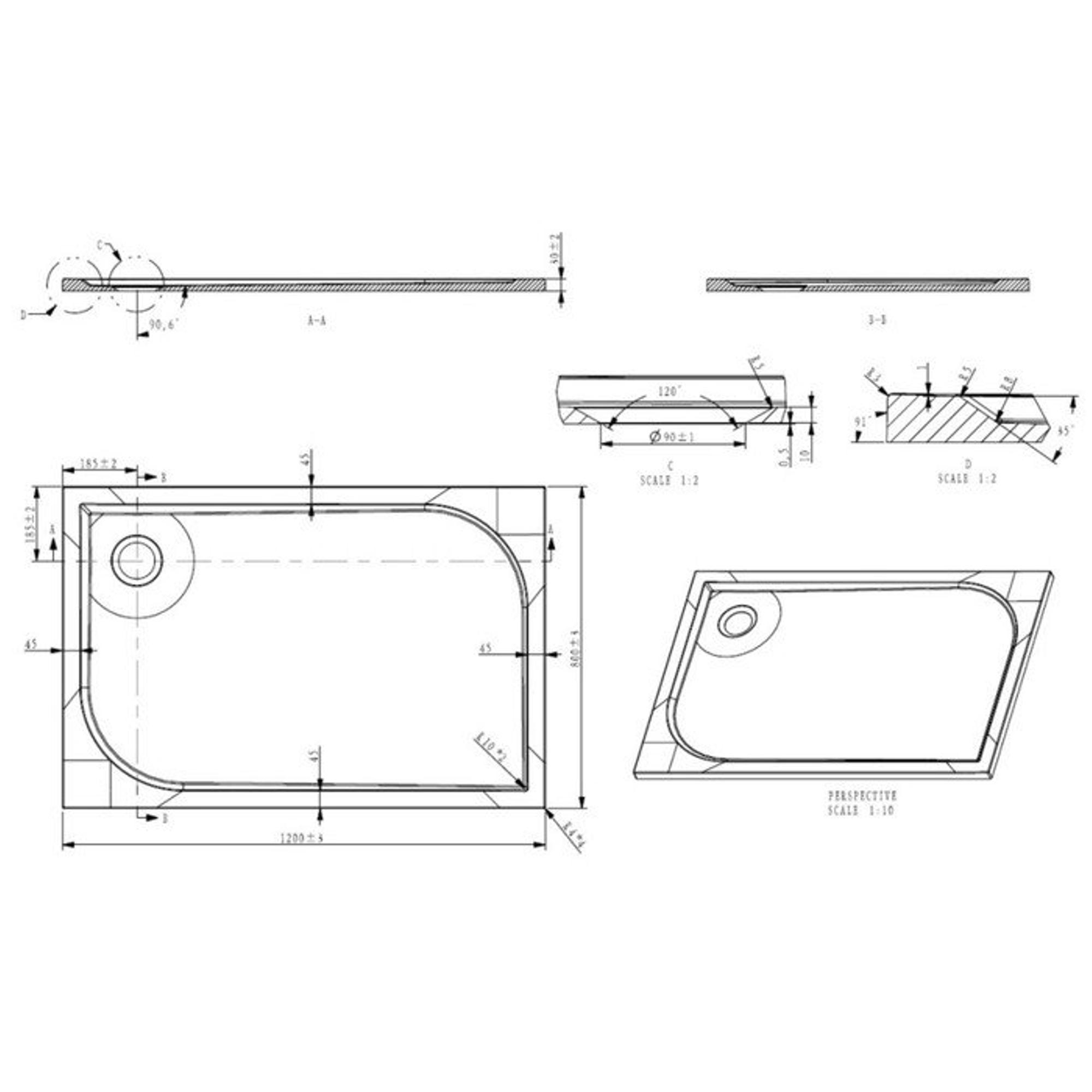 GO by Van Marcke Argon douchebak polybeton gelcoat 1200x800x30mm rechthoek afvoer D90mm zonder potenstel wit