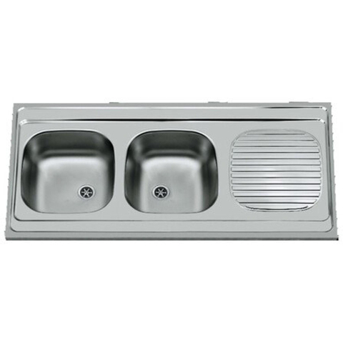 Nemo Start Bordeaux Opbouwspoeltafel - 2 bakken - afdruip - omkeerbaar - 120x60cm - zonder fixatieset - plug - overloopgarnituur - zonder sifon - RVS