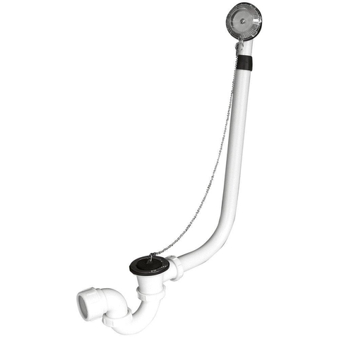 Go by Van Marcke Go Badgarnituur uit polypropyleen met rubberen stop en ketting. Aansluiting op afvoer met een wartelmoer D 40 mm. Geschikt voor alle standaardbaden.