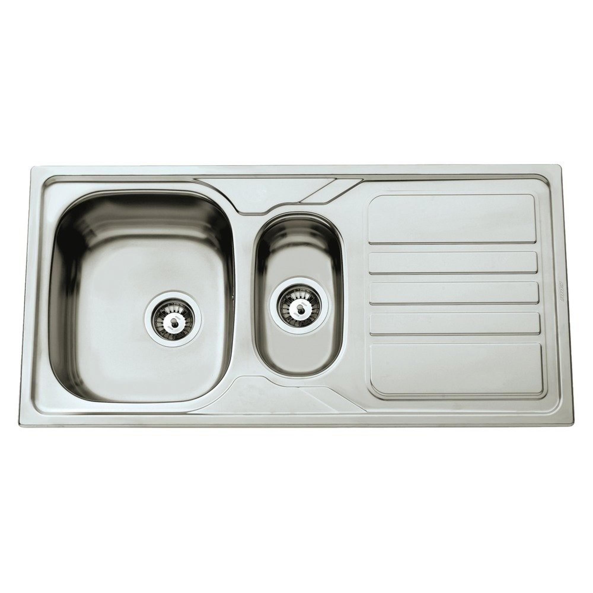 Nemo Spring Bourgogne inbouwspoeltafel met 15 bak met afdruip inox omkeerbaar 1000x500x170mm met fixatieset plug met overloopgarnituur zonder sifon