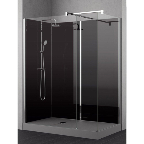 Nemo Stock Vidrio inloopdouche - 160x80x195cm - zwarte achterwand - inclusief douchebak grijs - met garnituur - zwart/chroom