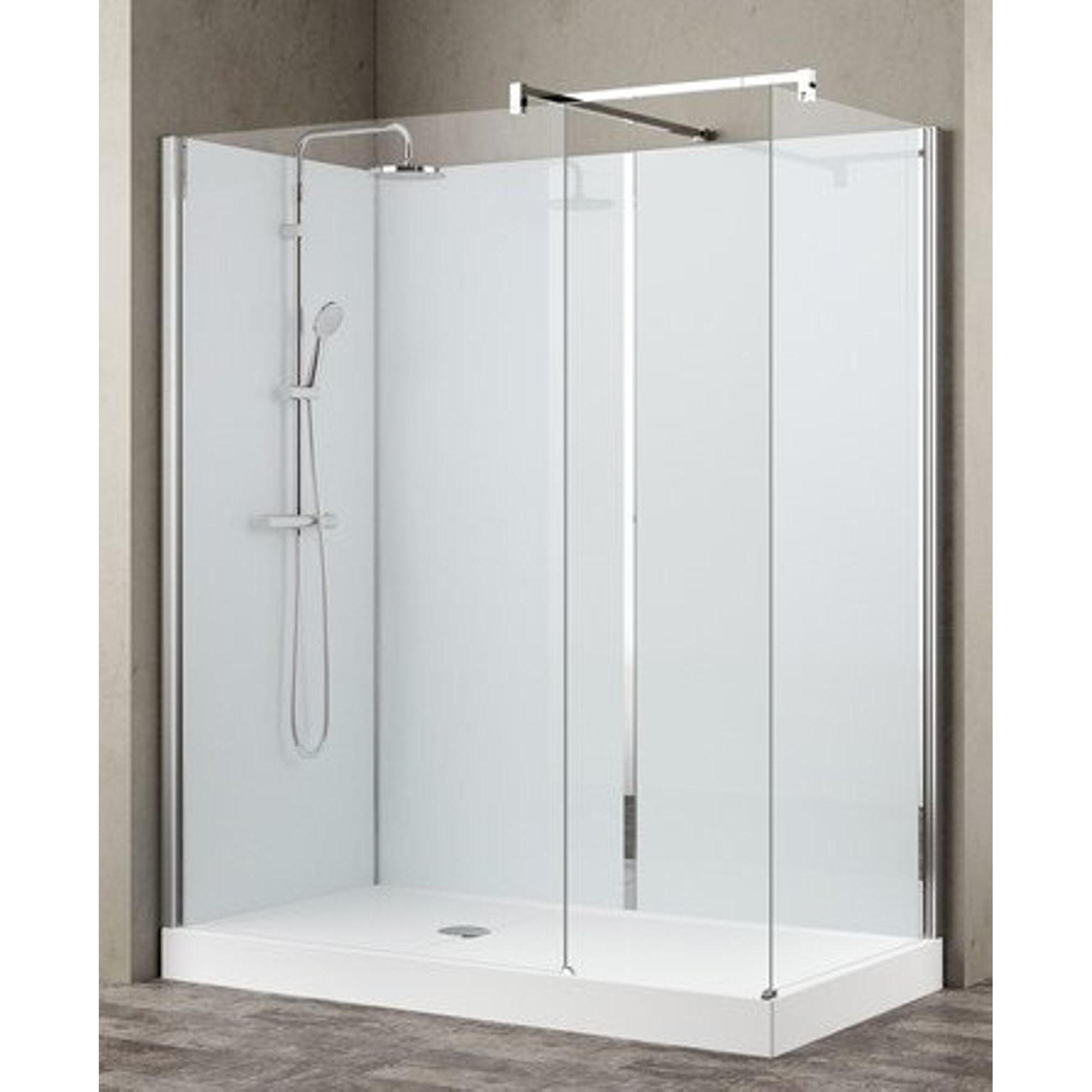 Nemo Stock Vidrio inloopdouche - 160x80x195cm - witte achterwand - inclusief douchebak - met garnituur - wit/chroom