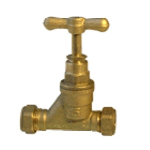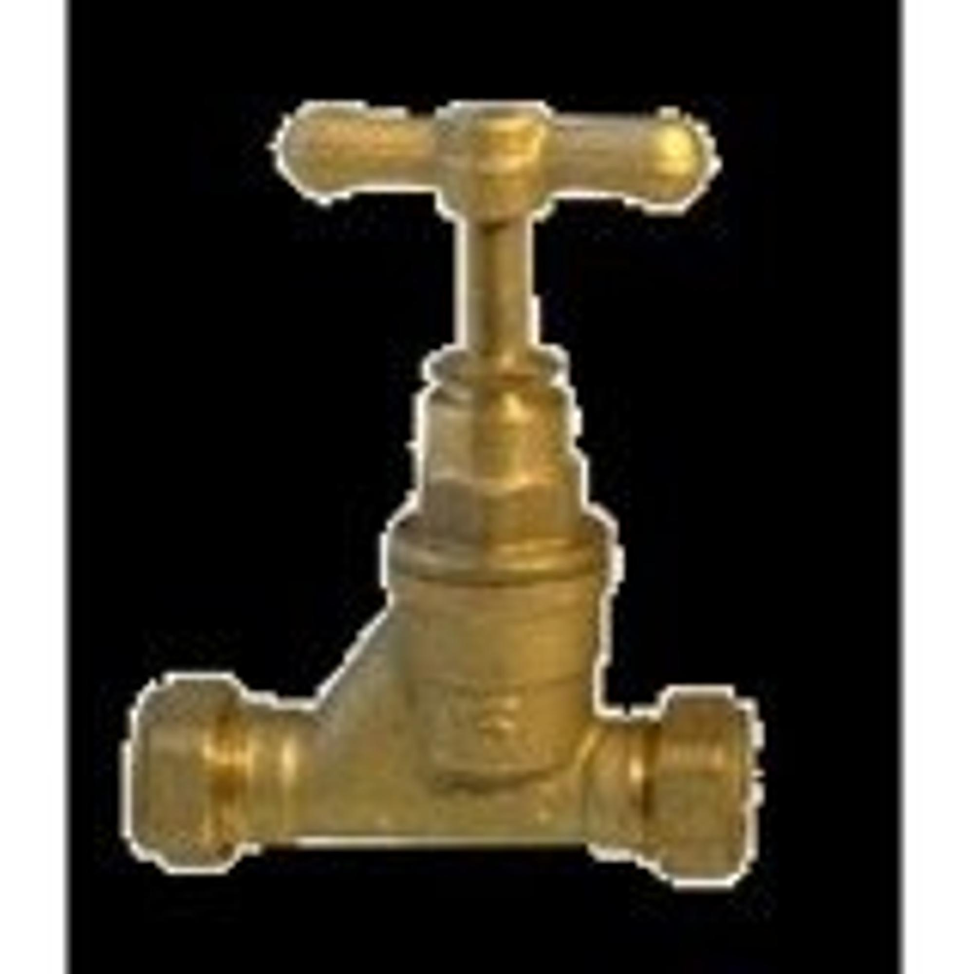 Klemkoppeling rechte afsluitkraan 2 x klem messing toepassing voor koperen buizen 15 x 15 mm