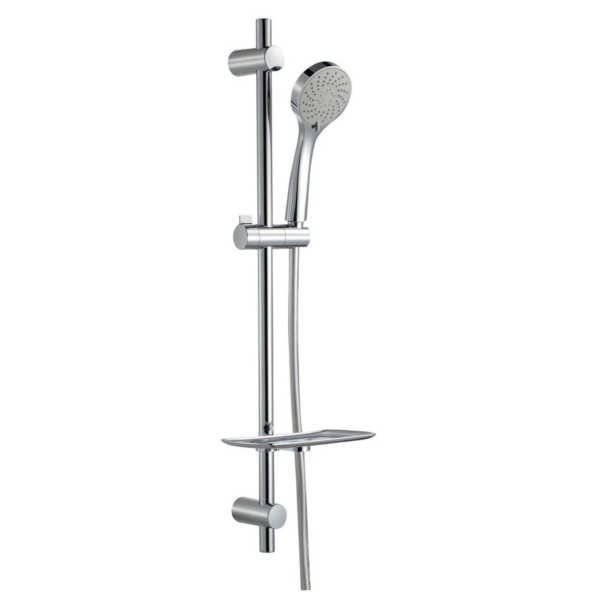 Nemo Spring Caluso douchestangset compleet met bevestigingen aanpasbaar 3 jets met glijstuk met zeepbakje verchroomd