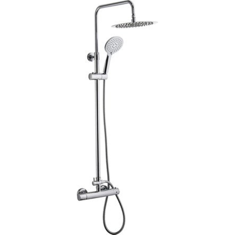 Dit douchesysteem in chroom past perfect in iedere badkamer. Het douchesysteem bestaat uit een ronde regendouche en een ronde handdouche. Daarnaast is dit douchesysteem voorzien van een thermostatische kraan.