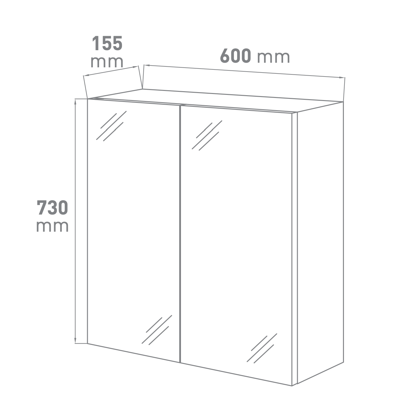 Go by Van Marcke Go Joelle Spiegelkast 600x155x730 mm wit mat met 2 deuren enkelzijdig spiegelend