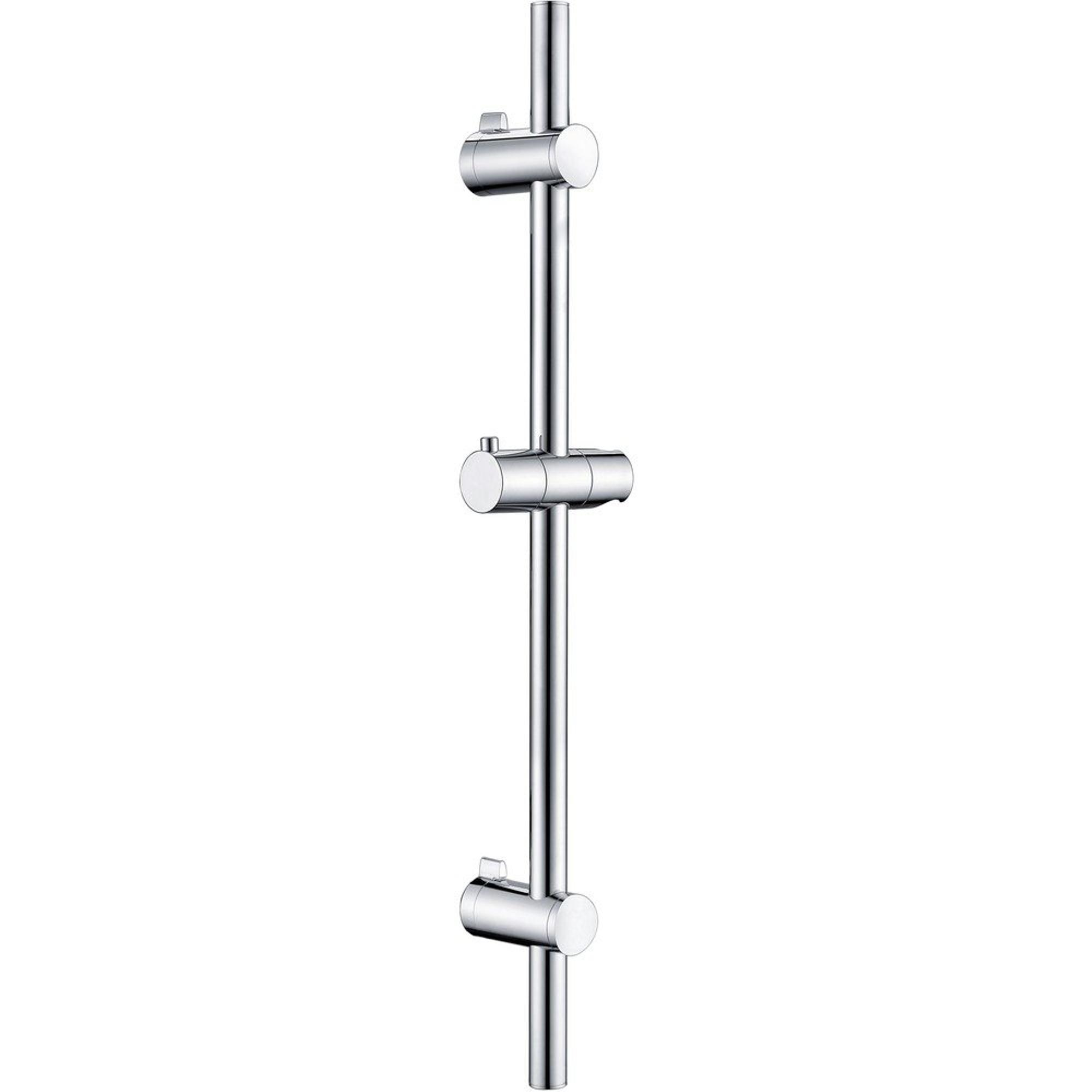 De chromen glijstang is 70cm hoog en voorzien van een verstelbare handdouchehouder. Er wordt bevestigingsmateriaal meegeleverd om de glijstang te bevestigen aan de muur. De diameter van de stang is 2.5 cm en wordt exclusief garnituur geleverd.
