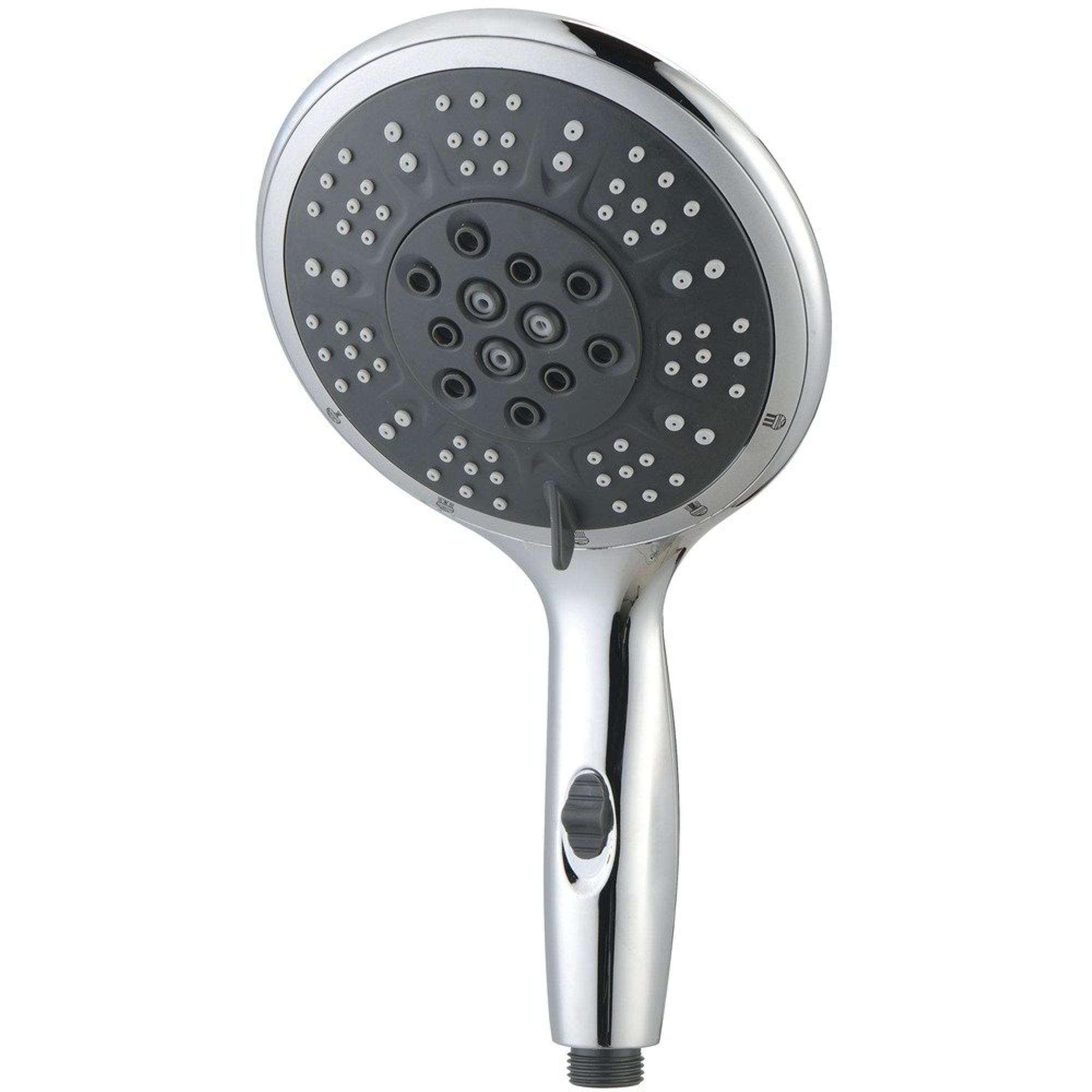 De chromen handdouche heeft een diameter van 15 cm en is voorzien van een universele aansluiting van 1/2 inch.