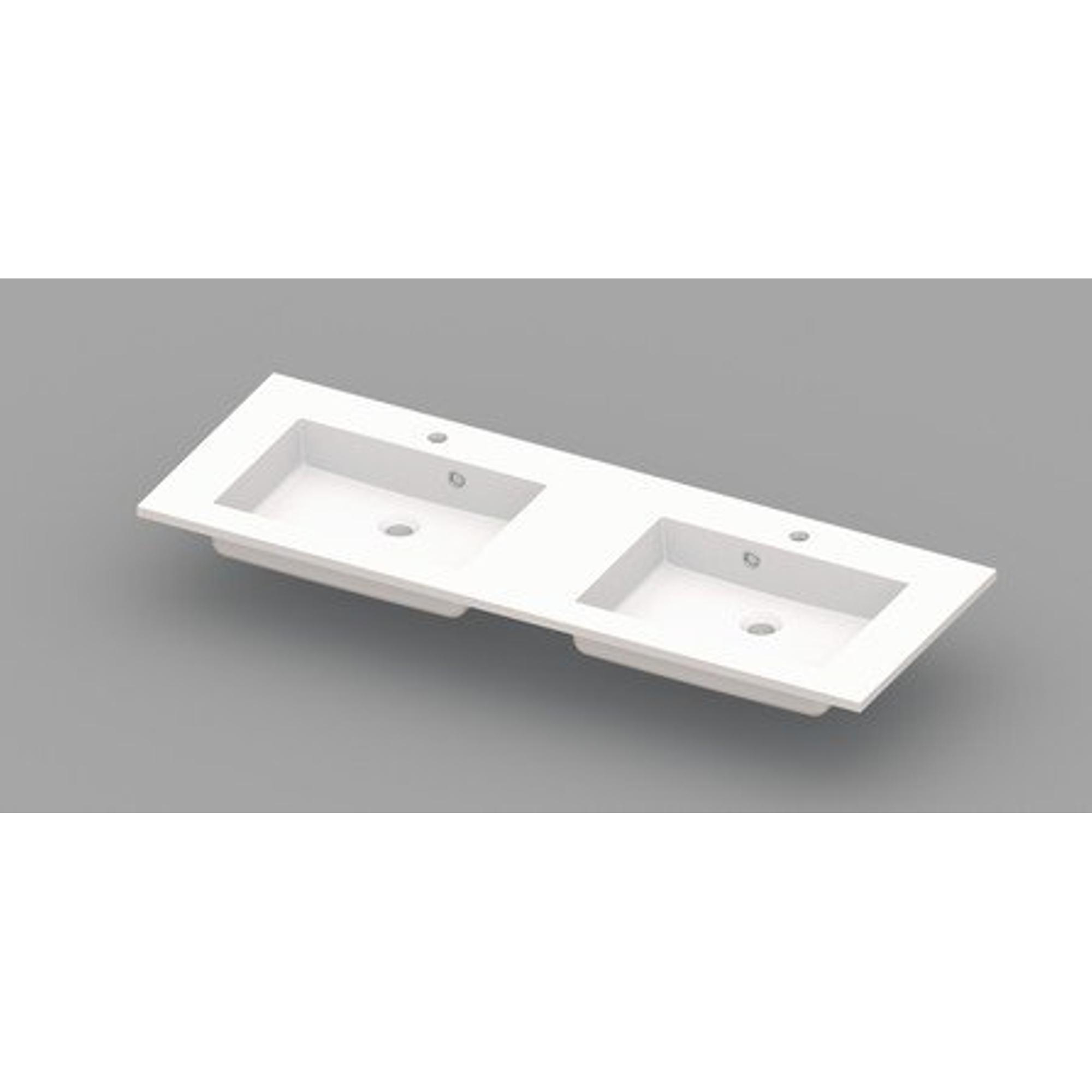 Nemo Spring Coste meubelwastafel 1400 x 500 x 200 mm met 2 afvoergaten D 45 mm 2 kraangaten met overlopen wit kunstmarmer