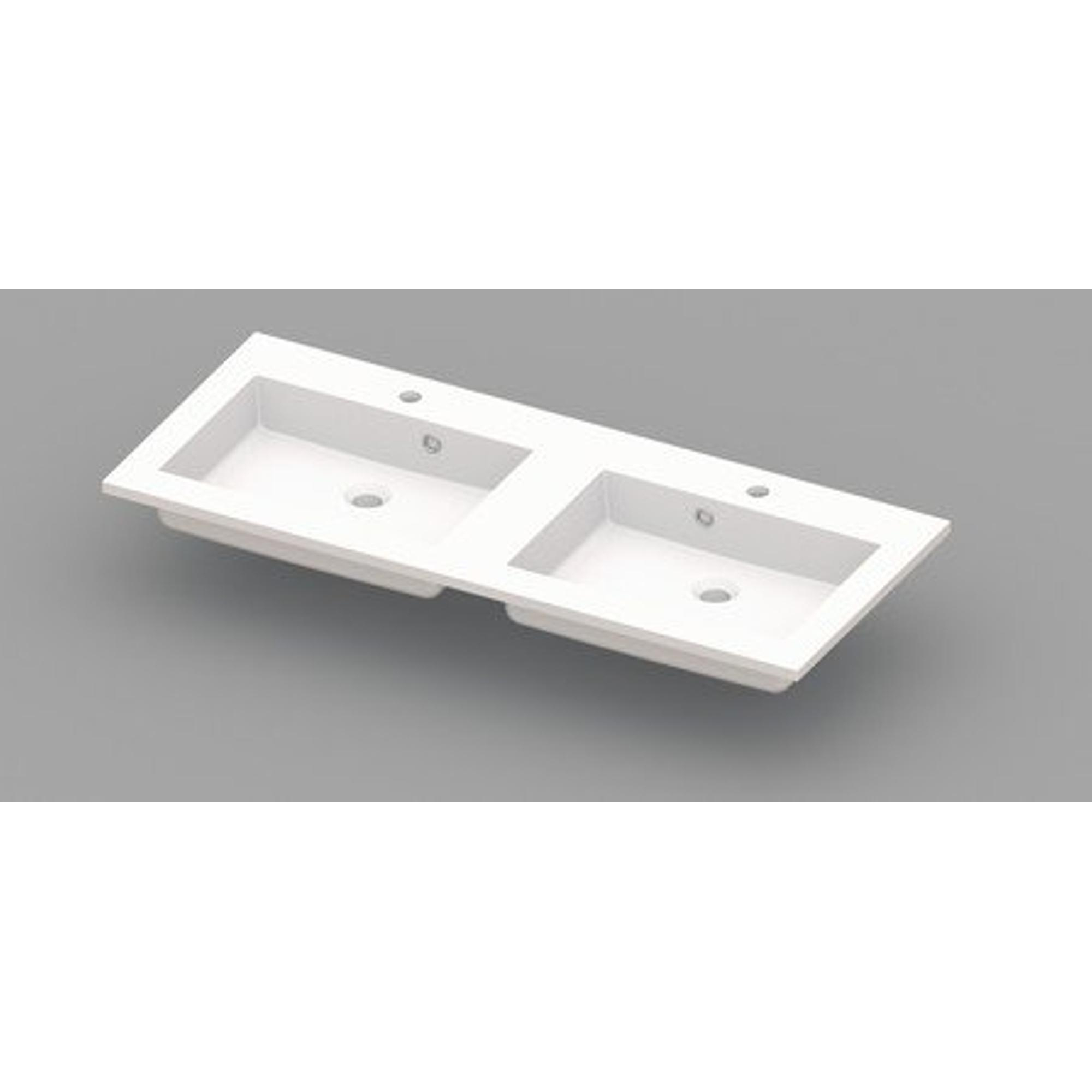 Nemo Spring Coste meubelwastafel 1200 x 500 x 200 mm met 2 afvoergaten D 45 mm 2 kraangaten met overlopen wit kunstmarmer