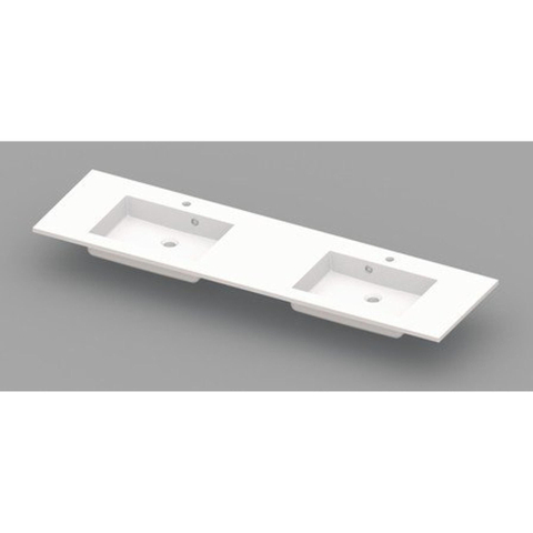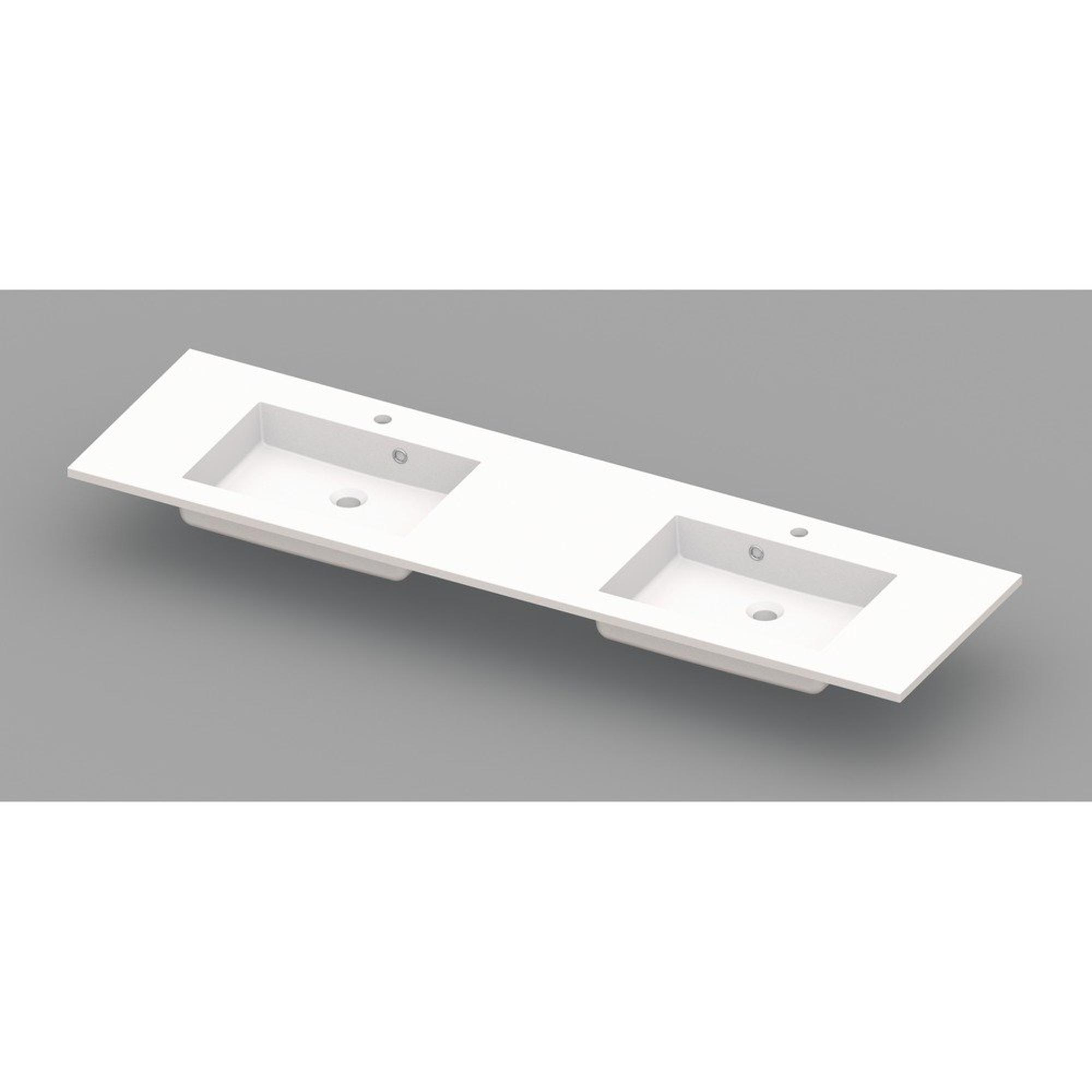 Nemo Spring Coste meubelwastafel 1800 x 500 x 200 mm met 2 afvoergaten D 45 mm 2 kraangaten met overlopen wit kunstmarmer