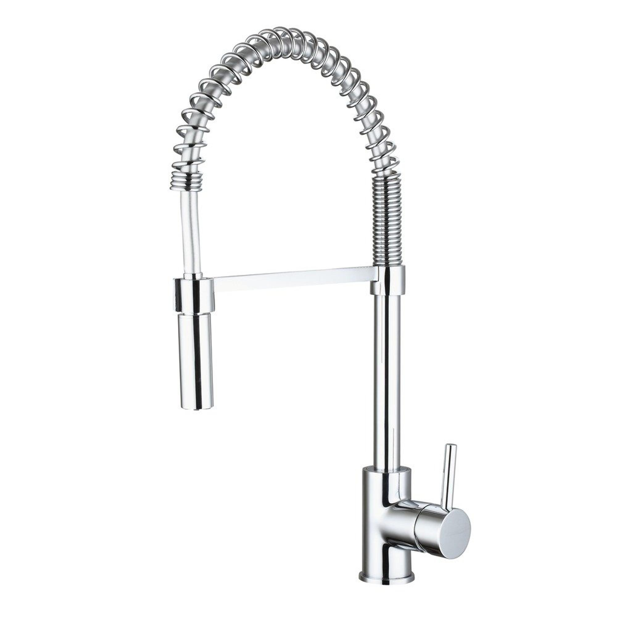 Nemo Spring Nola keukenmengkraan eengreeps met hoge spiraalveer uitloop en uittrekbare handdouche chroom