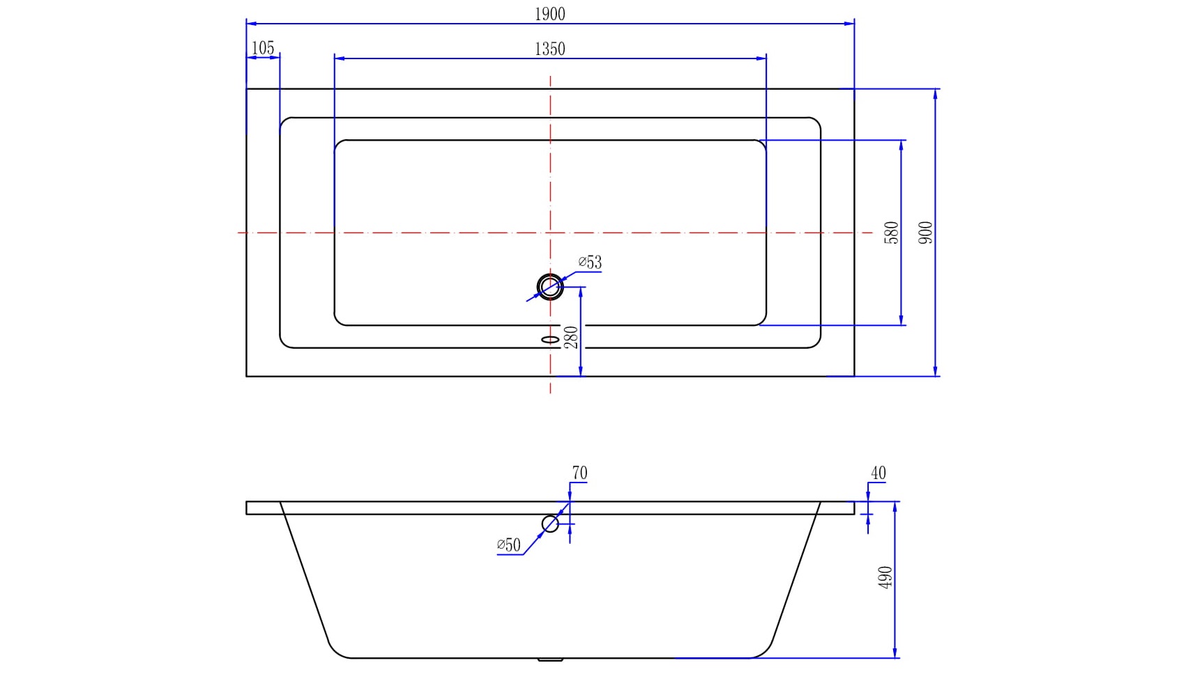 Xellanz Santino ligbad 190x90x49cm acryl glans wit