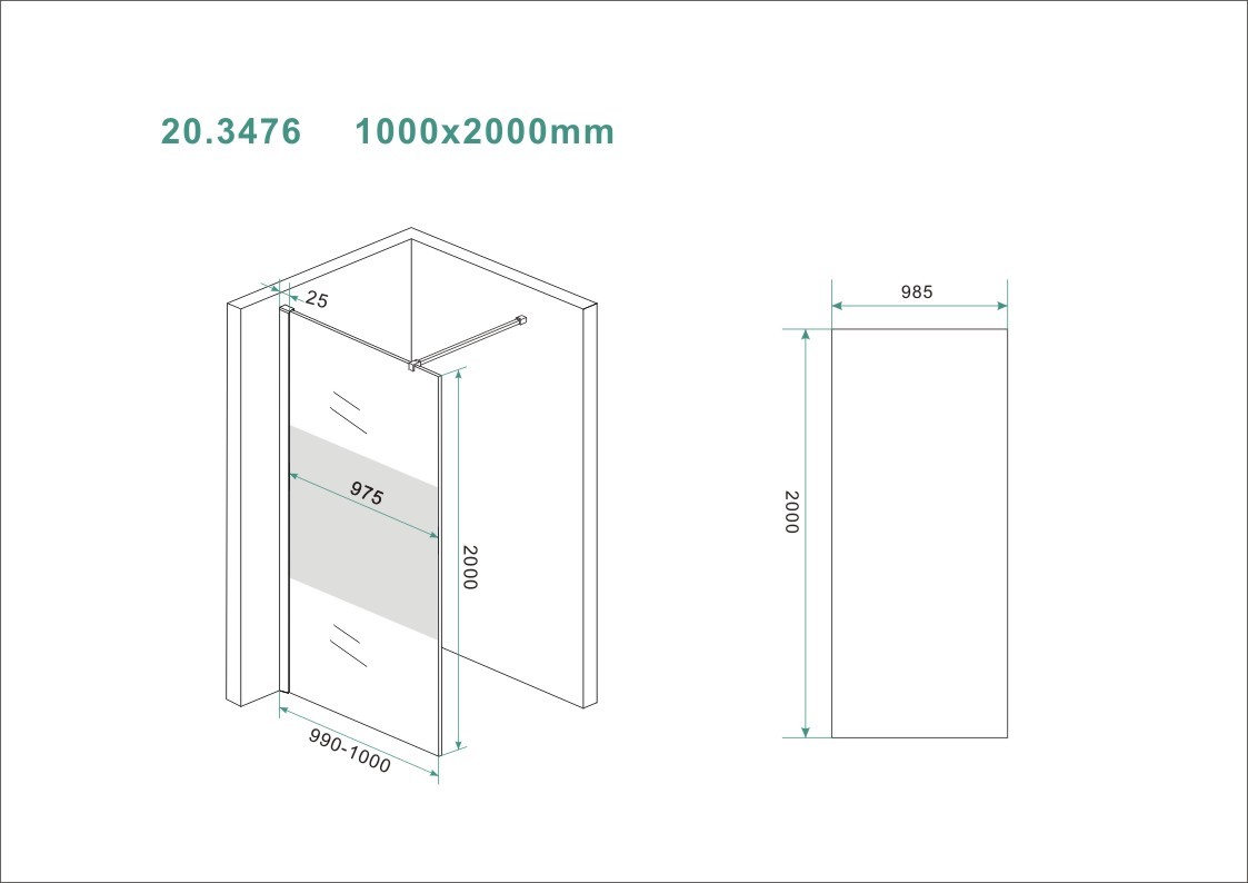 Wiesbaden Slim glasplaat 1000 x 2000 x 8 mm nano helder glas met melkglas middenband