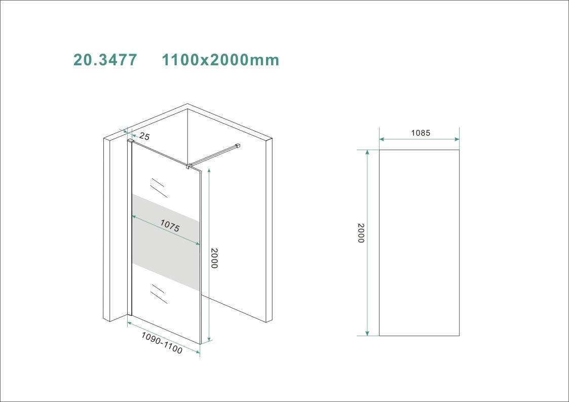 Wiesbaden Slim glasplaat 1100 x 2000 x 8 mm nano helder glas met melkglas middenband