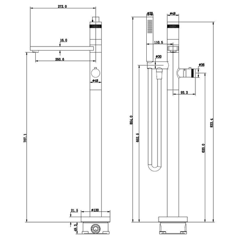 Wiesbaden Sphere thermstatische badmengkraan vrijstaand chroom