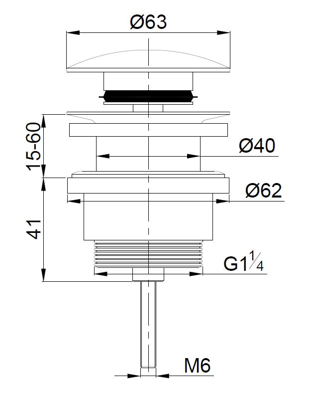Wiesbaden Caral clickwaste afvoerplug 5/4" geborsteld messing