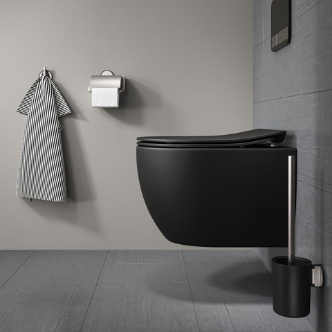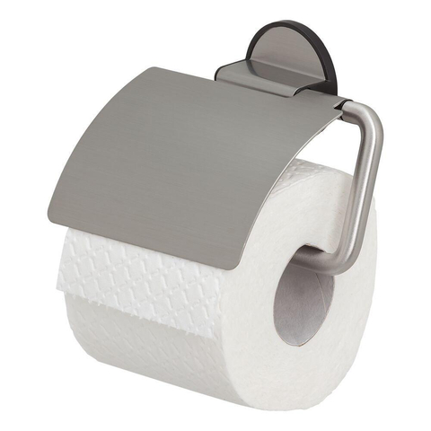 Tiger Tune Toiletrolhouder - met klep - zelfklevend - geborsteld RVS/zwart