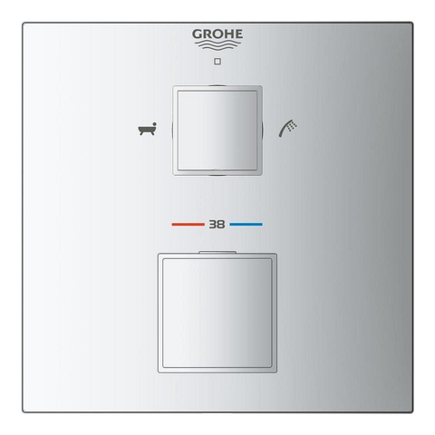 Grohtherm Cube badmengkraan opbouwdeel – de strakke, gevoelsmatige manier om je douche en bad te bedienen Beauty. De nieuwe minimalistische Grohtherm Cube thermostaatkranen serie is de nieuwe standaard voor de kubistische badkamer. Afgestemd op de huidige interieurtrends biedt Grohtherm Cube geavanceerde, kubistische producten voor een betaalbare prijs. Brains. Grohtherm Cube is uitgerust met de meest geavanceerde cartouches in de sanitairindustrie; de basis voor de GROHE TurboStat® technologie. Door de gevoeligheid van het thermo-element te vergroten, reageren onze thermostaatkranen twee keer zo snel als voorheen op schommelingen in de waterdruk. Douchen en badderen wordt zo nog veiliger.