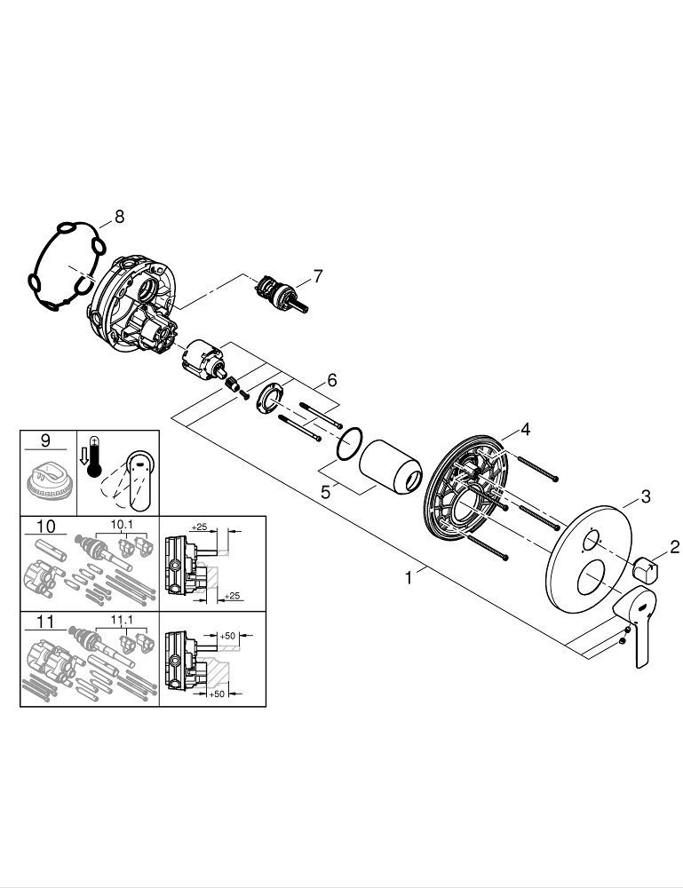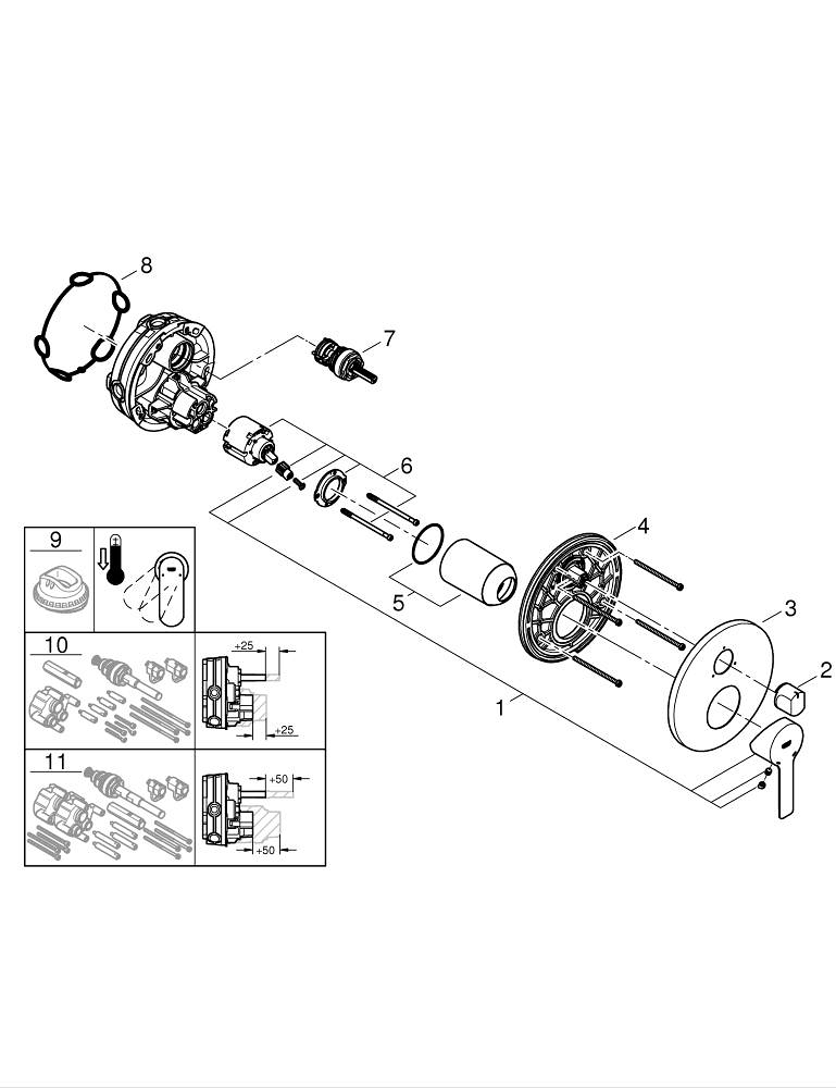 GROHE Lineare afbouwdeel v. inbouw mengkraan m. 3 functies omstelling supersteel 24095DC1