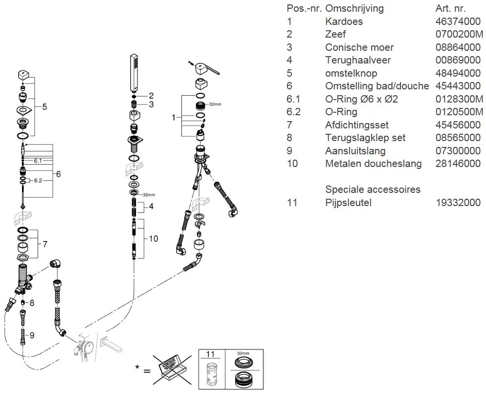 Het afbouwdeel voor de 3-gats badrandcombinatie van GROHE Plus is niet alleen een lust voor het oog, maar ook uiterst functioneel. Met de handdouche en doucheslang van 200cm biedt dit product ultiem comfort en gemak tijdens het douchen of baden. Het omstelmechanisme zorgt ervoor dat je eenvoudig kunt schakelen tussen de handdouche en de hoofddouche, waardoor je altijd de gewenste waterstraal kunt kiezen. Dit afbouwdeel is ontworpen met jouw comfort en gebruiksgemak in gedachten.