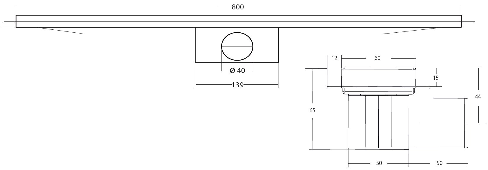 Van den berg R-line renovatie-douchegoot 80cm zij-uitlaat 40mm rvs