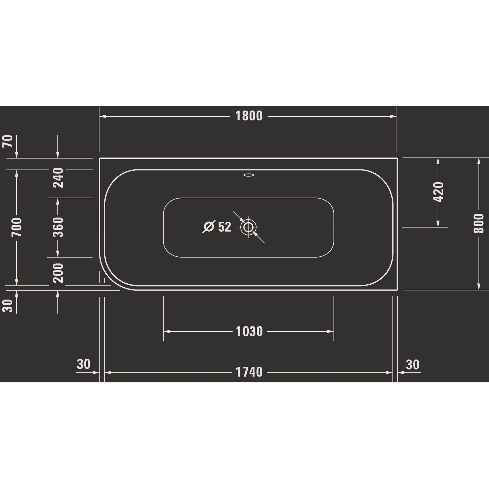 Duravit Happy d.2 bad half vrijstaand 180x80cm wit mat antraciet