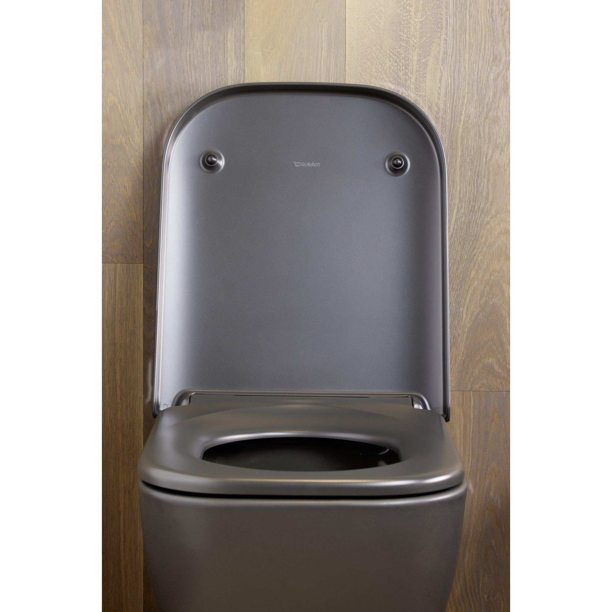 Duravit Happy D.2 WC-zitting 43x35.9x4.3cm met softclose met quickrelease Kunststof Antraciet Mat