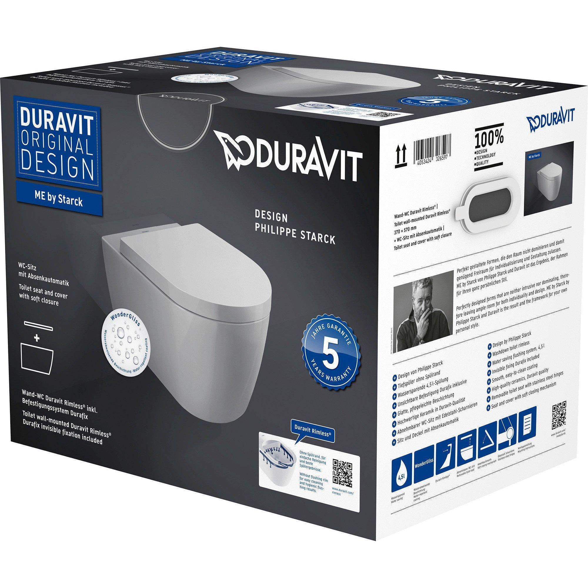Duravit ME by Starck wandclosetpack spoelrandloos 37x57cm Wondergliss met softclose closetzitting wit