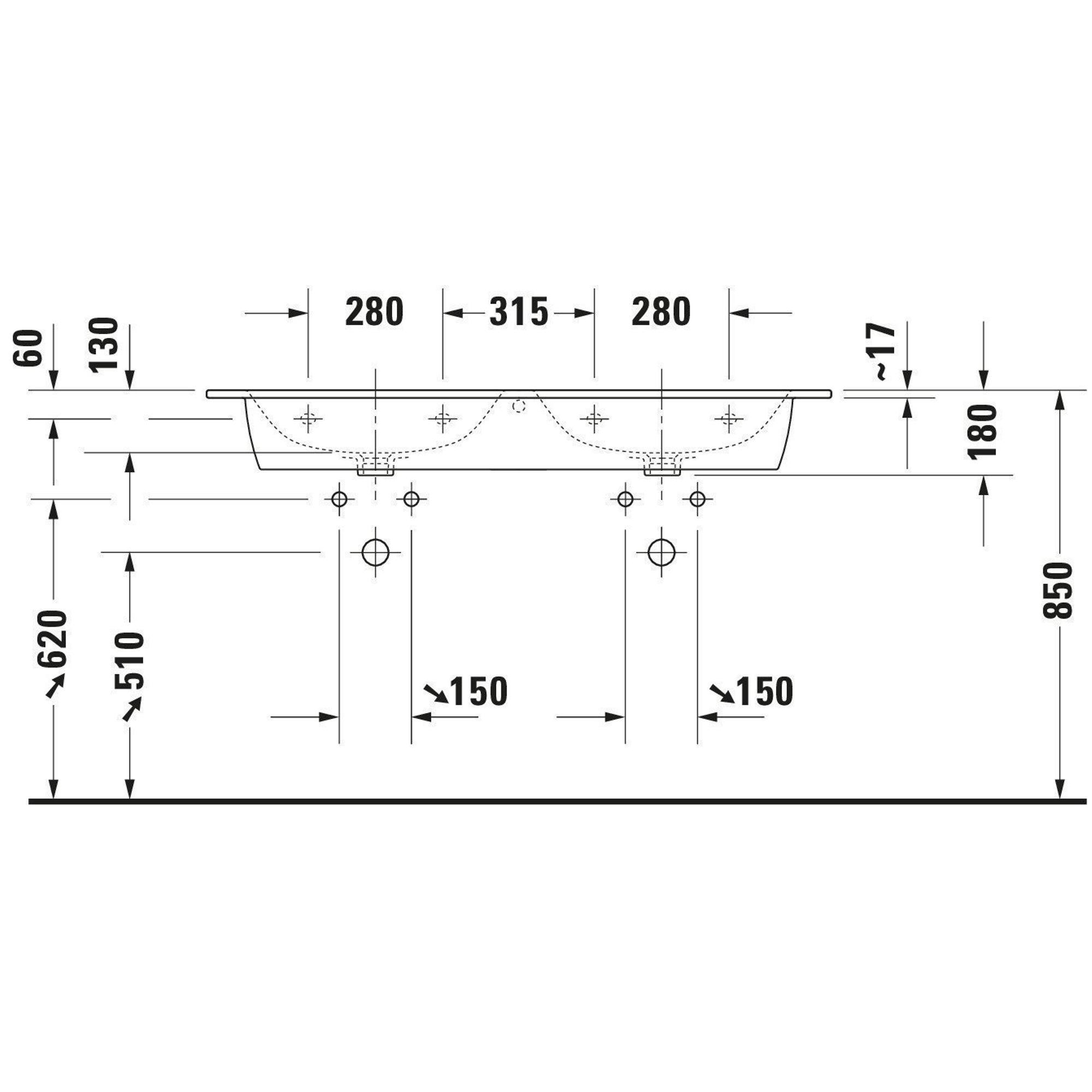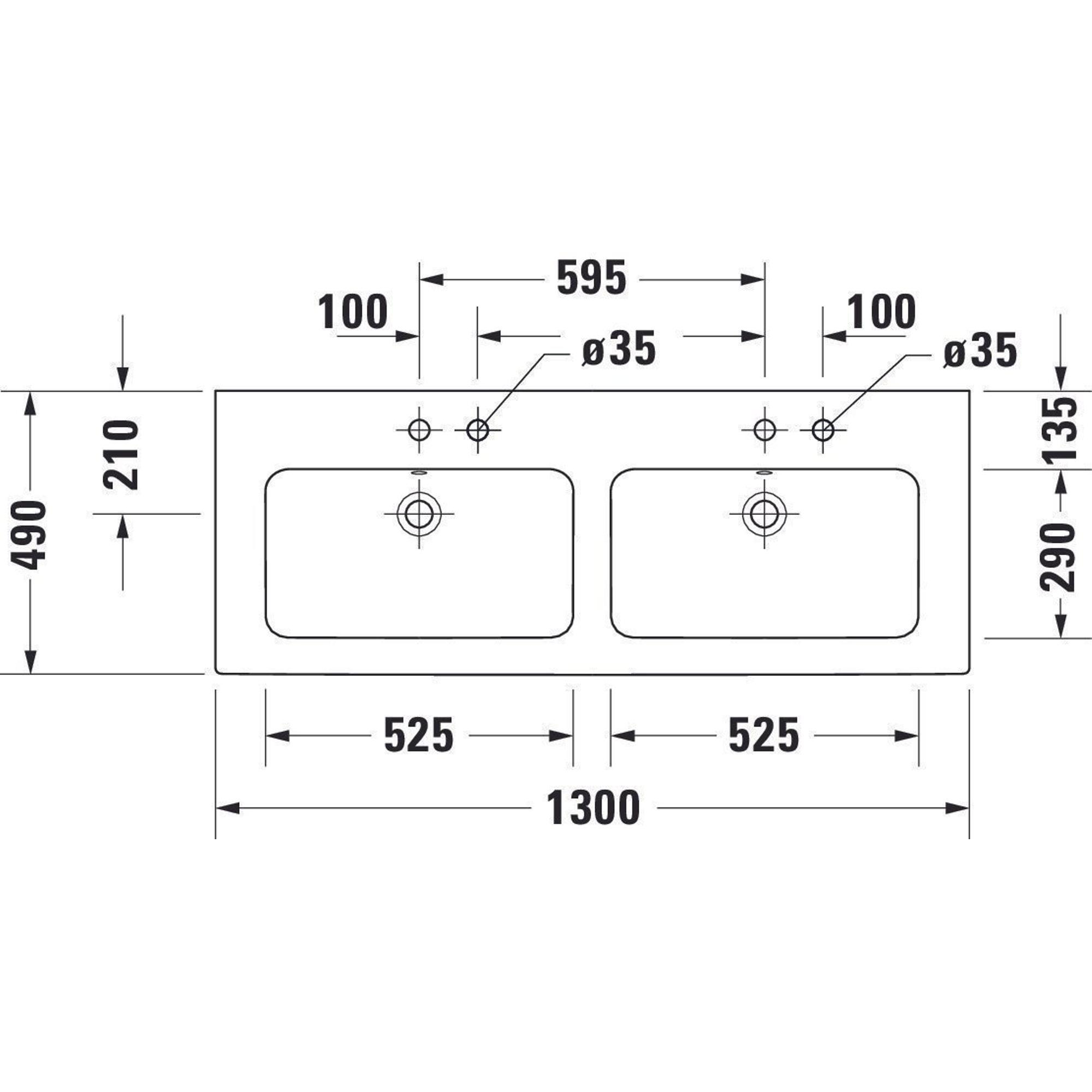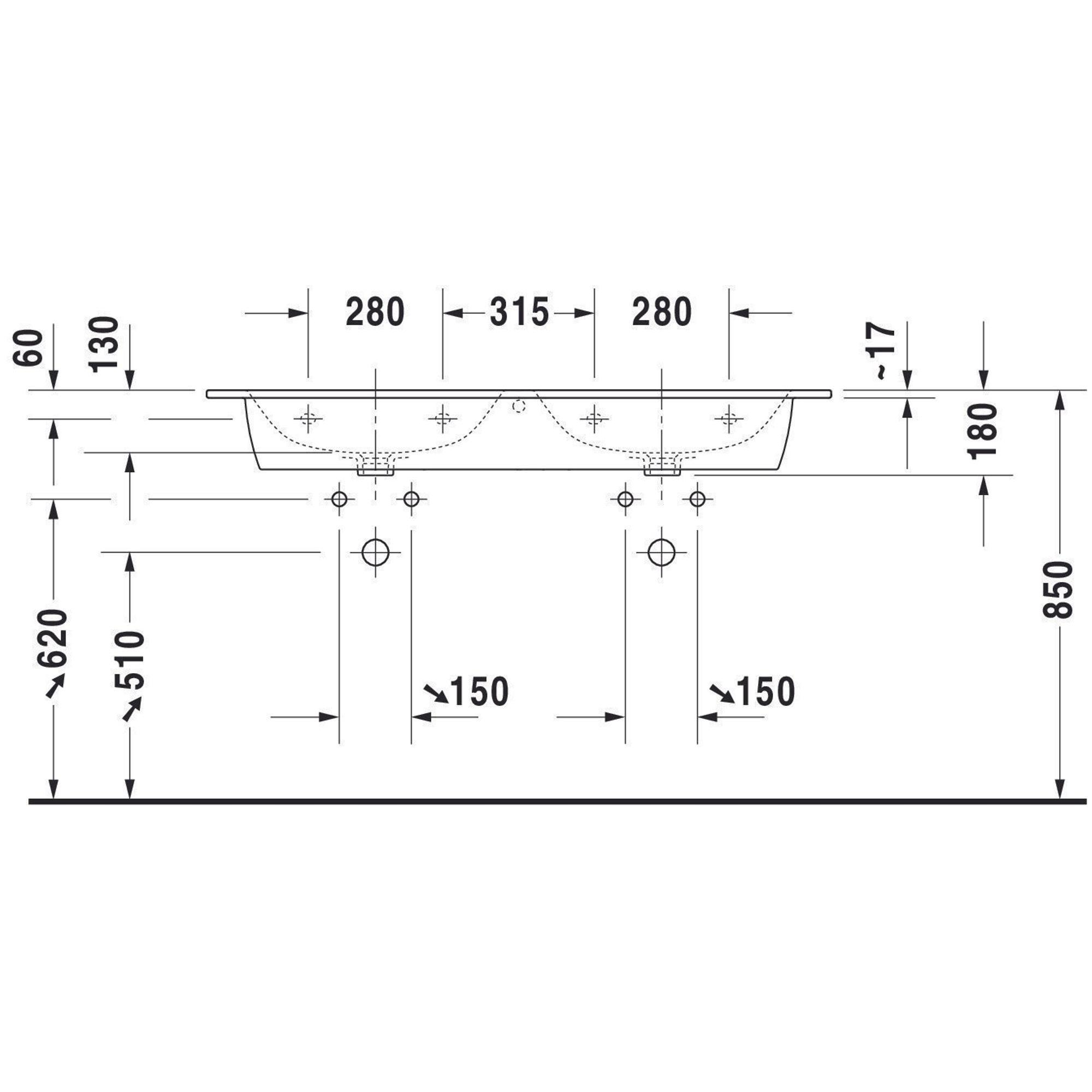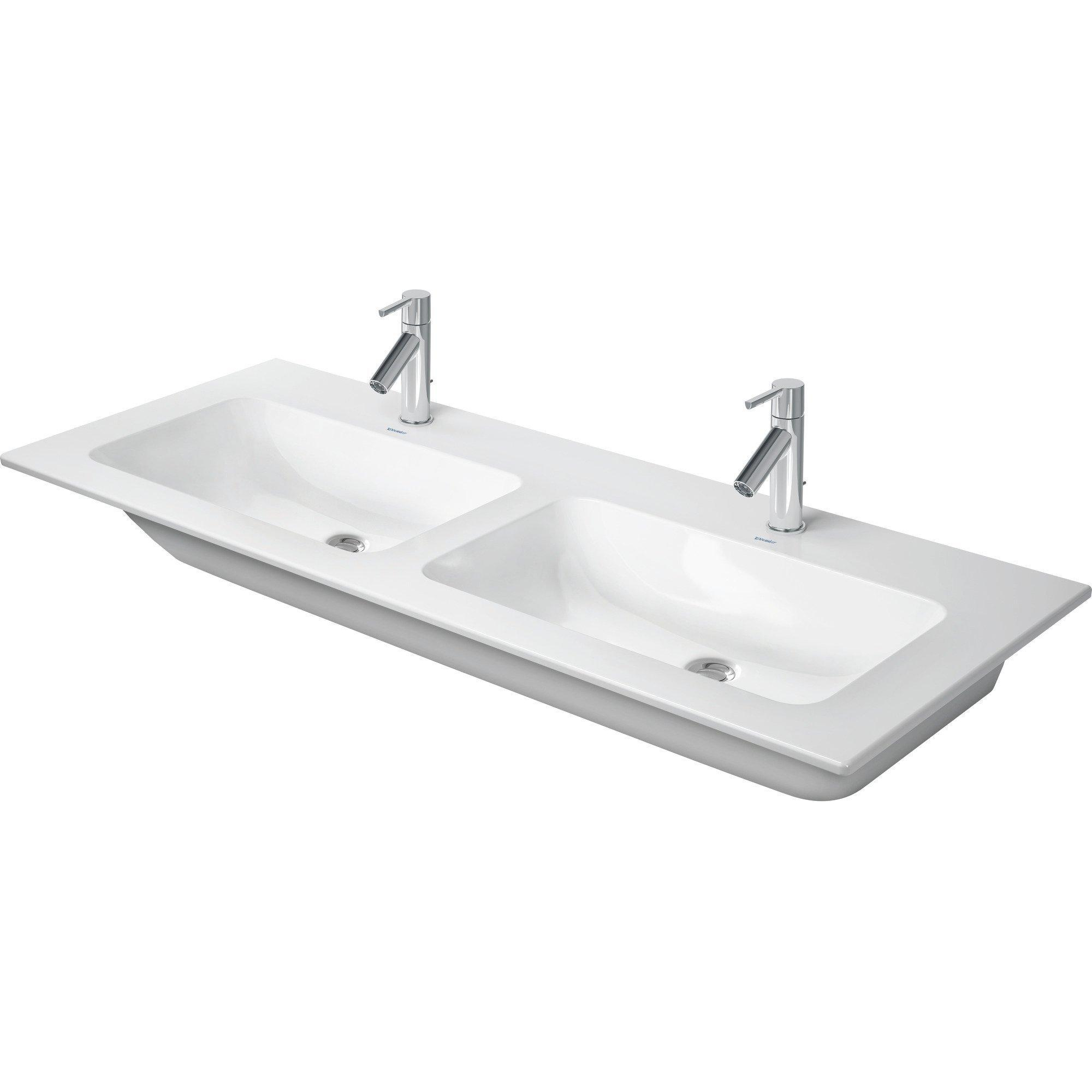 Duravit ME by Starck meubelwastafel dubbel 2 kraangaten met overloop 130x49cm mat wit