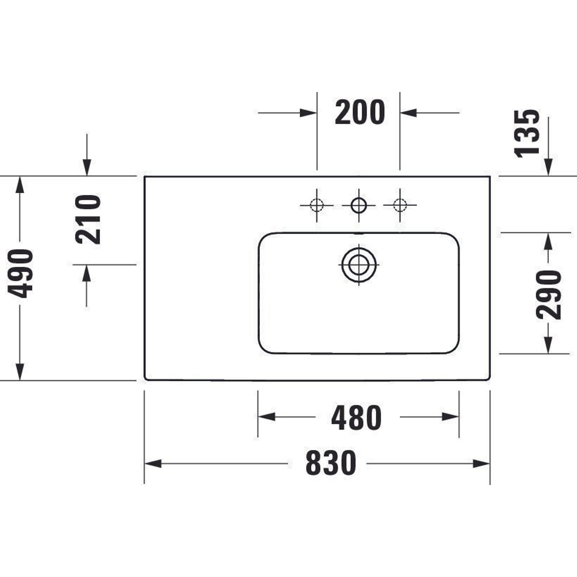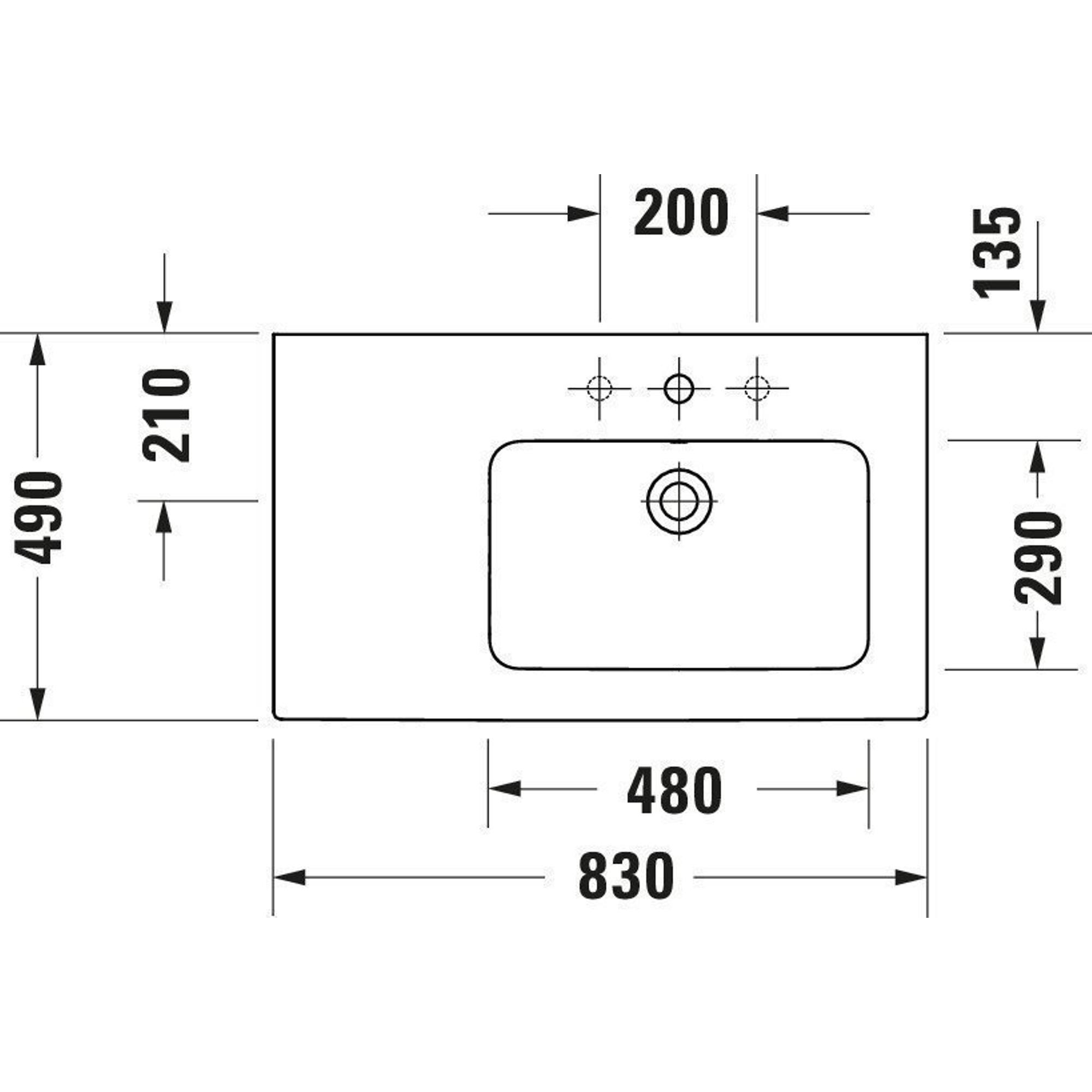 Duravit ME by Starck meubelwastafel asymmetrisch met wastafel rechts 83x49cm 1 kraangat met overloop mat wit