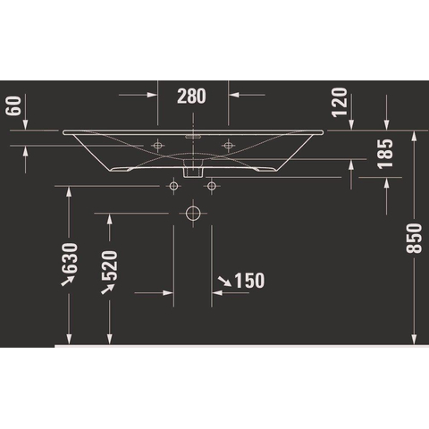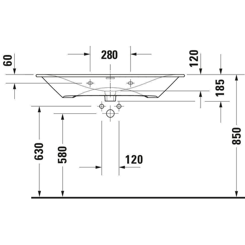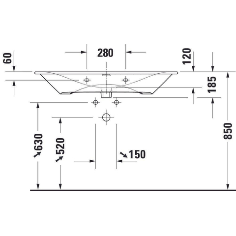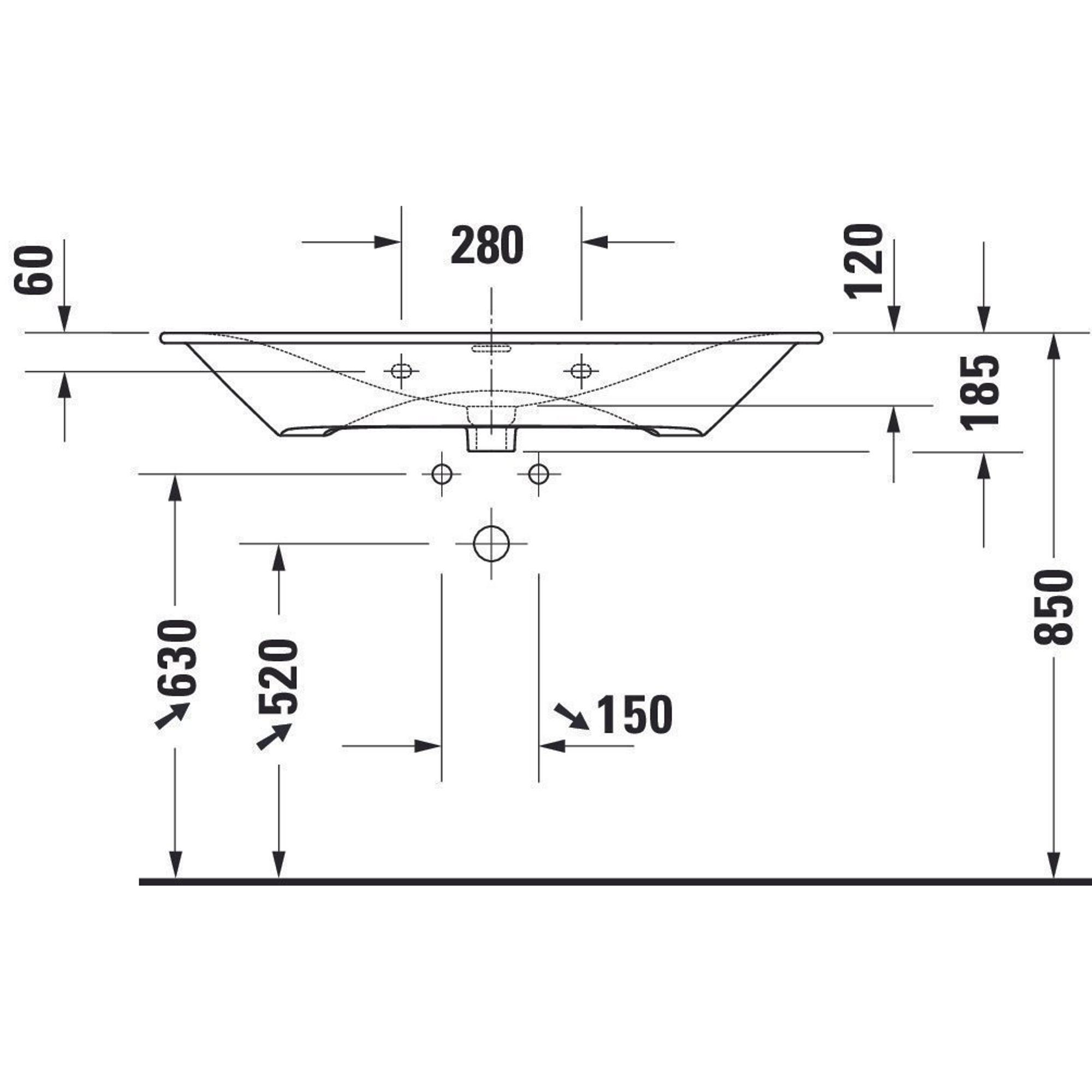 Duravit Viu meubelwastafel 1 kraangat met overloop 103x49cm wit