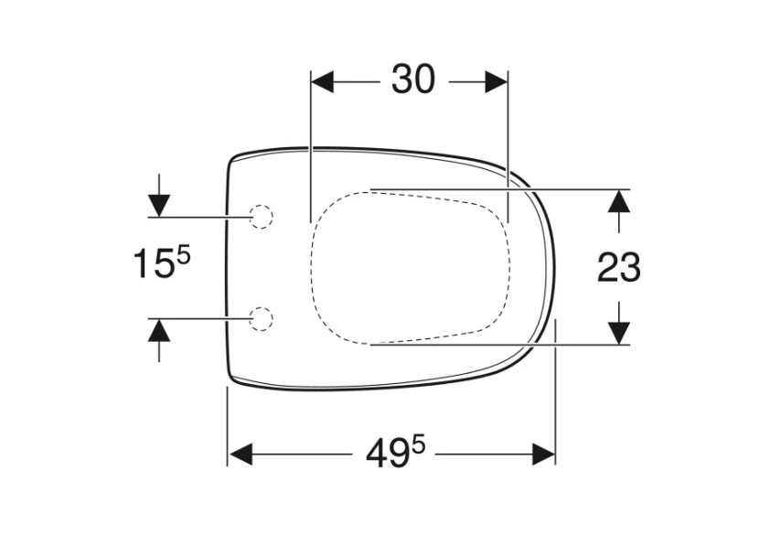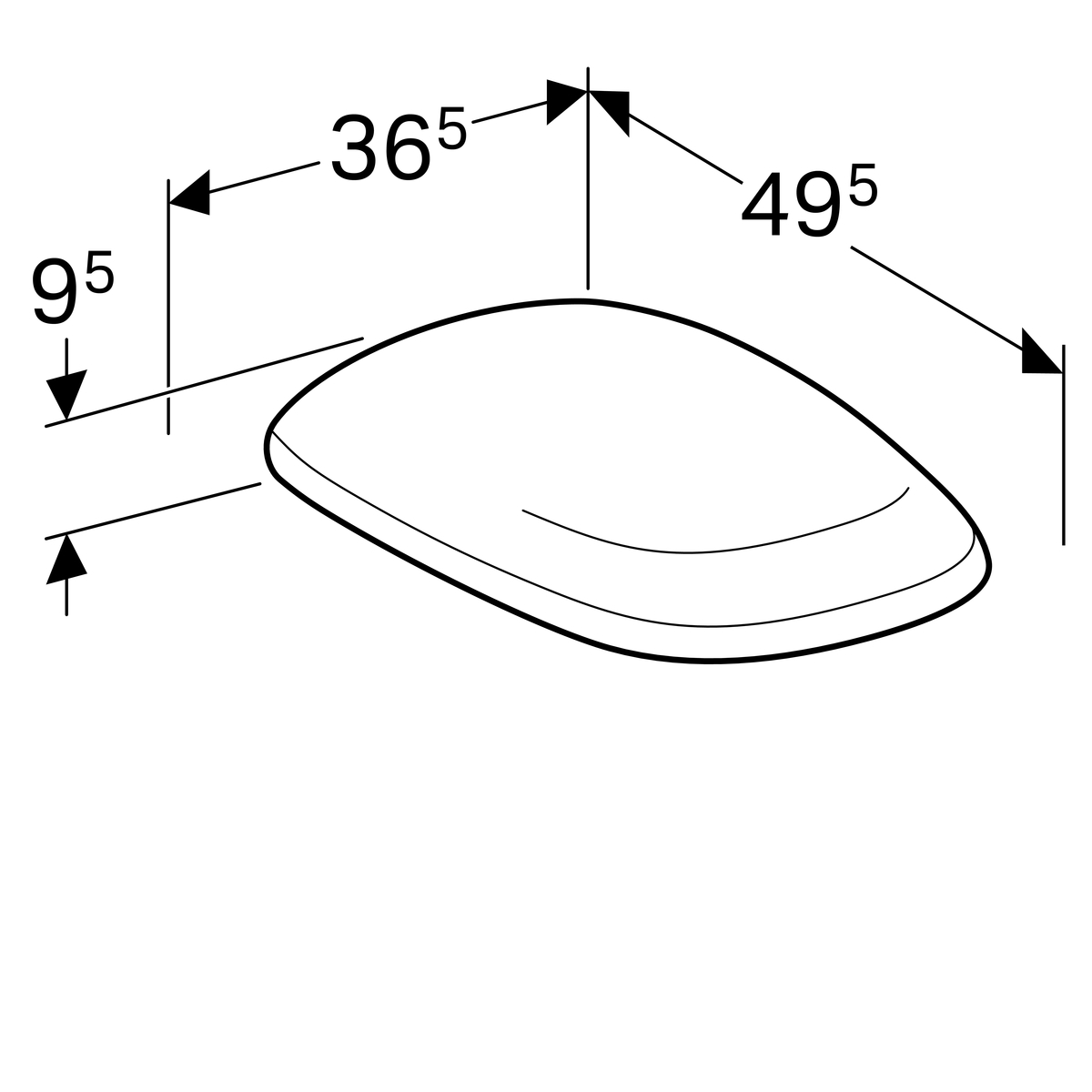 Deze wc-bril is 36.5 x 49.5 centimeter groot.