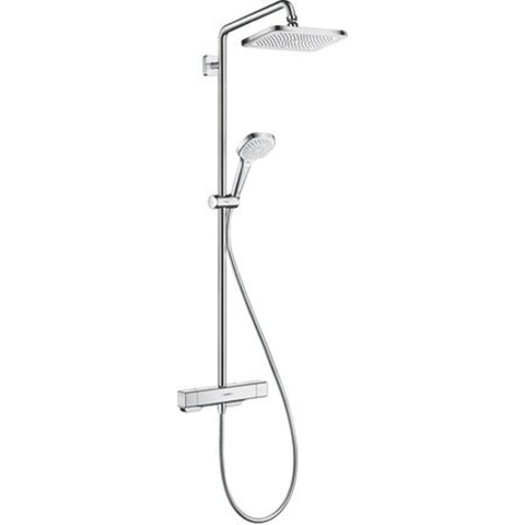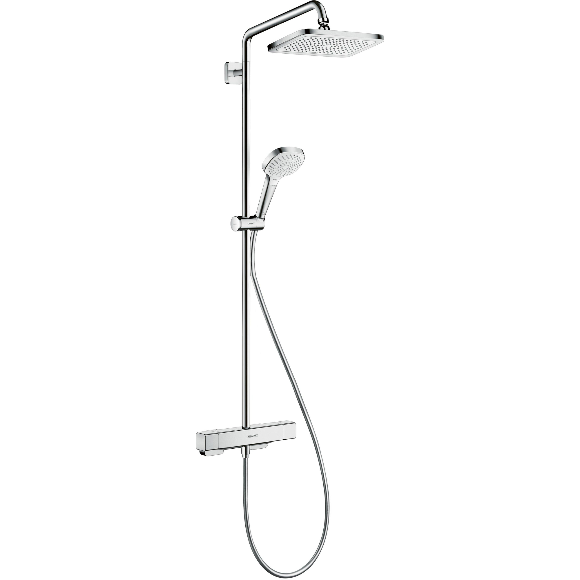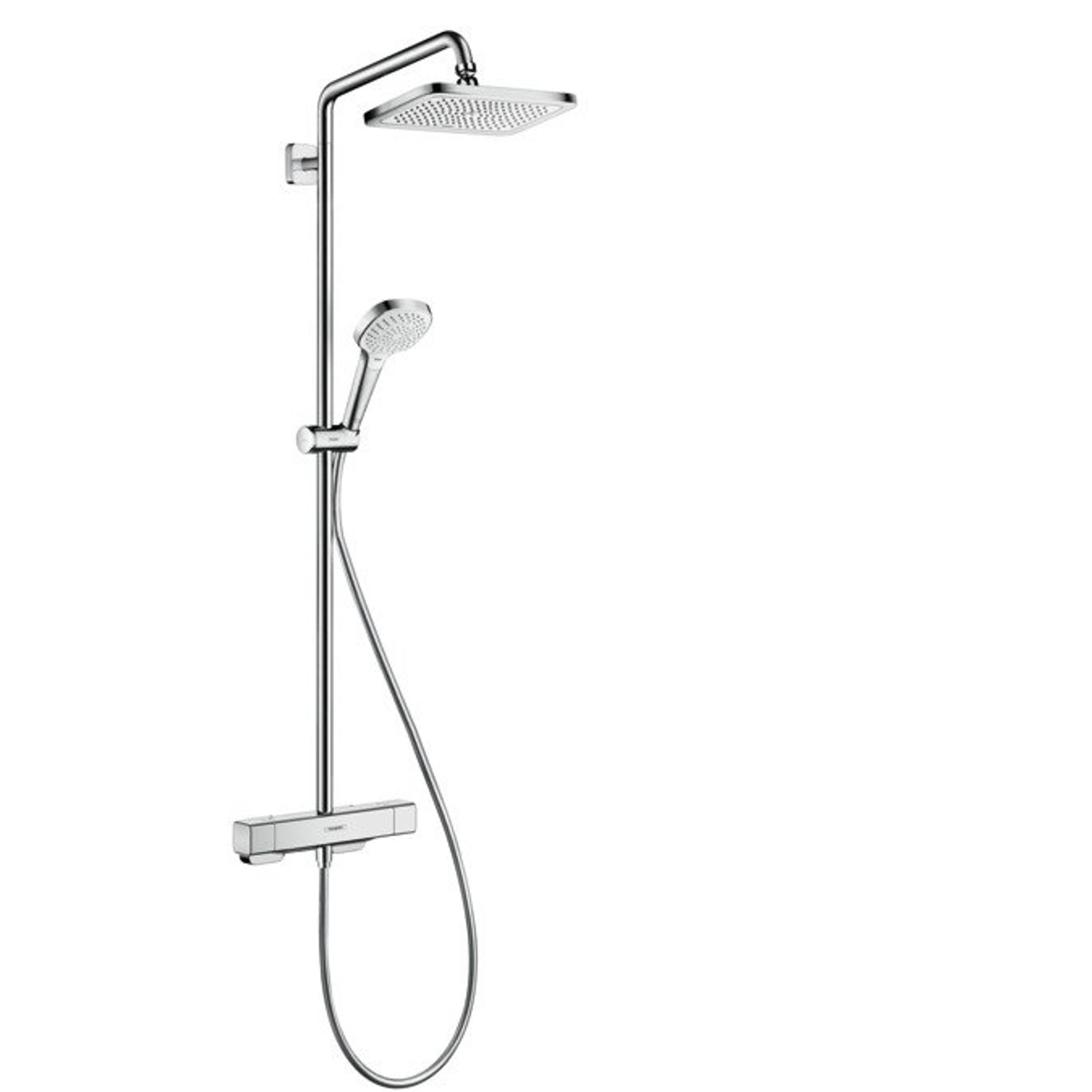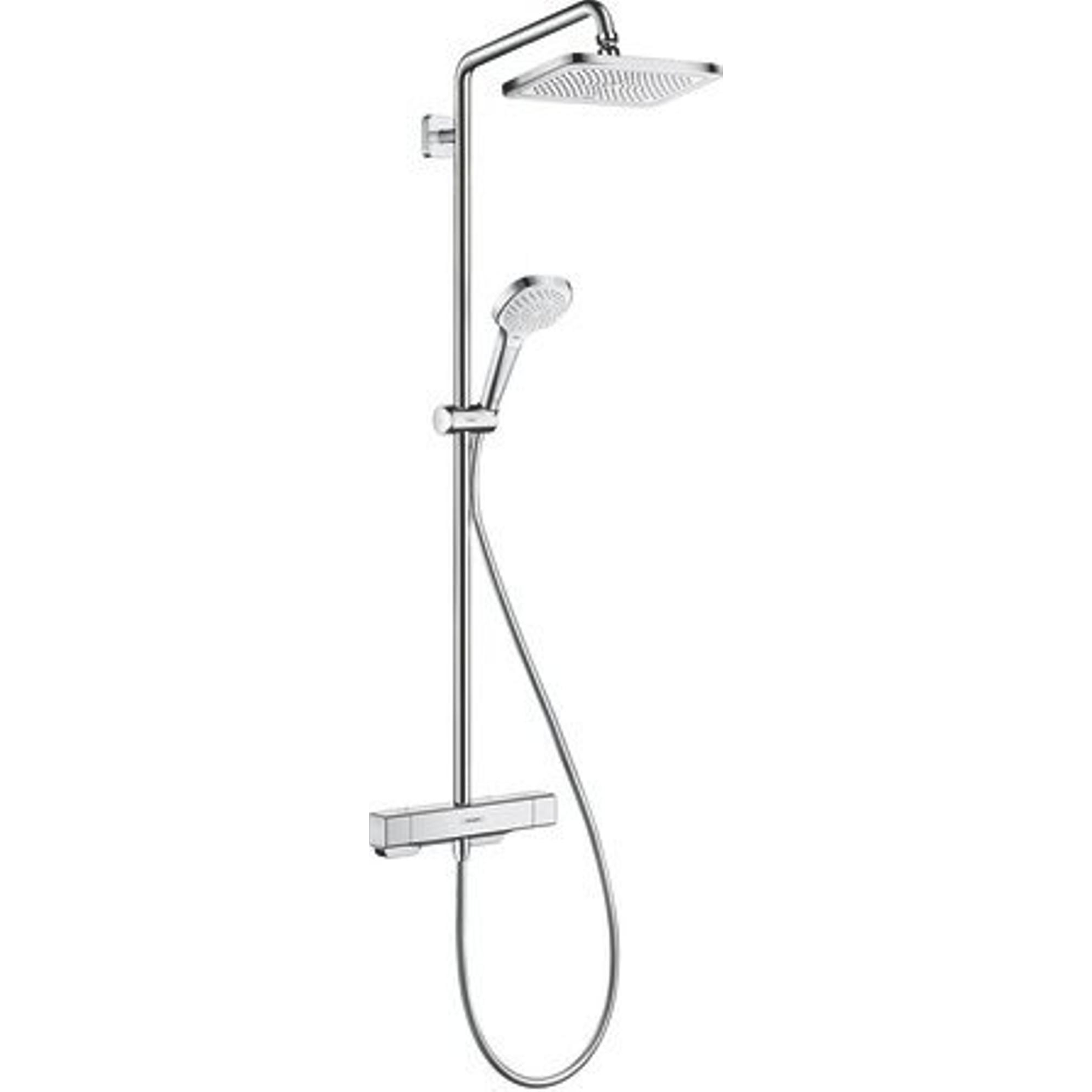 Hansgrohe Croma E280 showerpipe: met douchekraan thermostatisch m. 1jet hoofddouche m. 3jet handdouche multi en doucheslang 160cm chroom