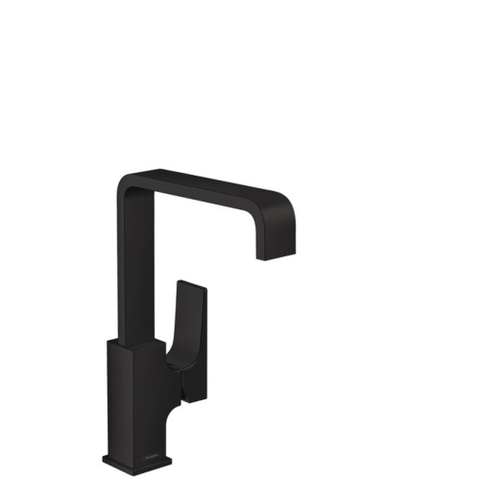 De ééngreeps wastafelmengkraan Metropol 230 met rechte greep en PushOpen afvoergarnituur met een mat zwart finish van hansgrohe maakt indruk door zijn geometrische design en duidelijke vormtaal. De elegante mengkraan heeft door zijn matte, zwarte finish een bijzonder moderne uitstraling. Door de combinatie van ruime oppervlakken en precieze geometrie is de mengkraan een designstatement, dat juist in mat zwart een expressief contrast vormt en bijzonder goed past in een modern badkamerinterieur. Extra pluspunt: Door de zeer grote afstand tussen de uitloop en de fontein is er genoeg ruimte voor veelzijdig gebruik (ComfortZone 230). Voor bijvoorbeeld comfortabel vullen van hoge pannen of het eenvoudig wassen van uw haren onder de kraan.