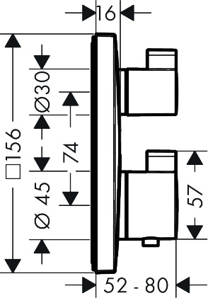 Hansgrohe Ecostat Square afbouwdeel v. inbouw thermostaat m. stop- en omstelkraan mat zwart