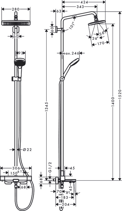 Met de Croma E 280 1jet met badthermostaat verander je de badkamer in een aangename oase voor jong en oud. In deze showerpipe met baduitloop is alle ervaring van hansgrohe voor zorgeloos doucheplezier verwerkt.
