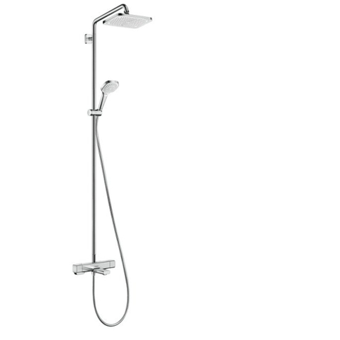 Hansgrohe Croma E280 showerpipe: m. badkraan thermostatisch m. 1jet hoofddouche m. 3jet handdouche multi en doucheslang 160cm chroom