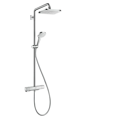 Hansgrohe Croma E280 showerpipe: met douchekraan thermostatisch m. 1jet hoofddouche EcoSmart m. 3jet handdouche multi en doucheslang 200cm chroom